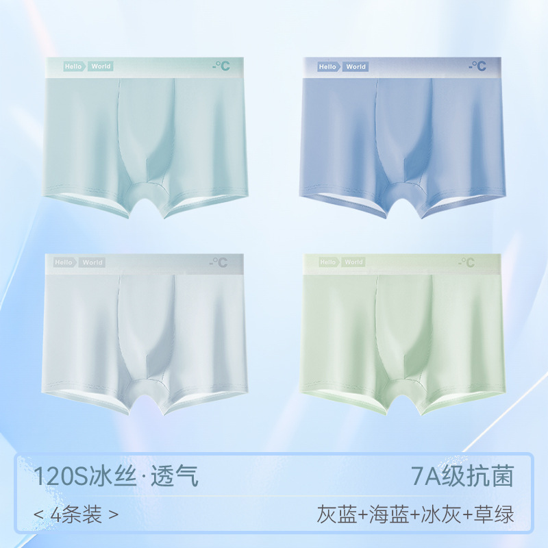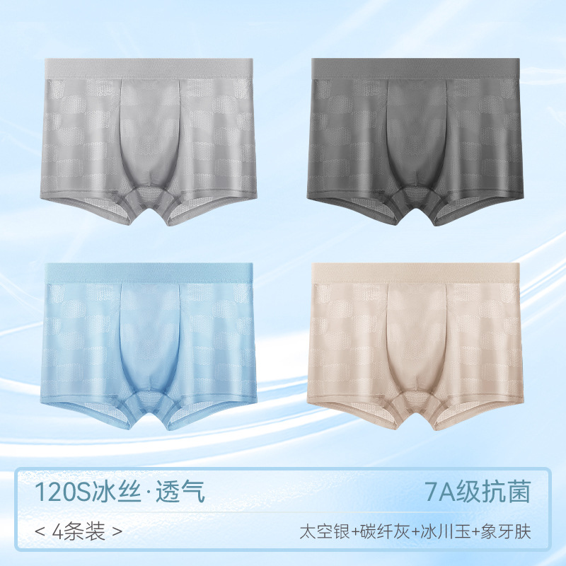 남자 속옷 아이스 실크 원활한 메쉬 복서 반바지 헤드 2024 새로운 4 코너 남자 여름 얇은스토어 가기