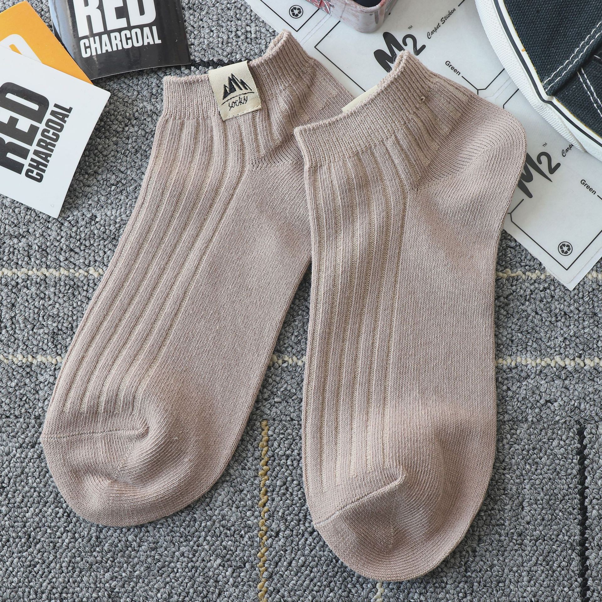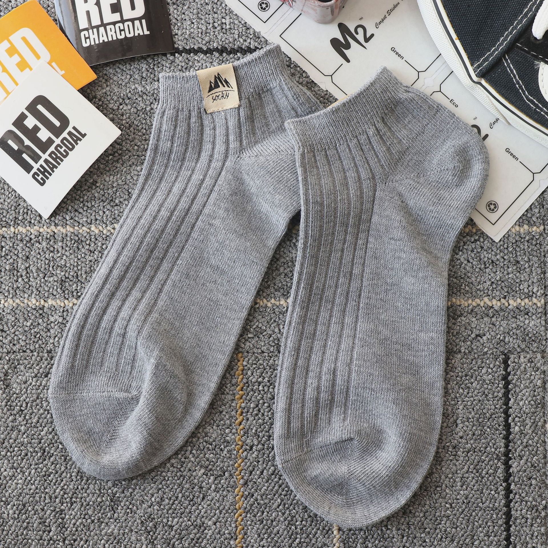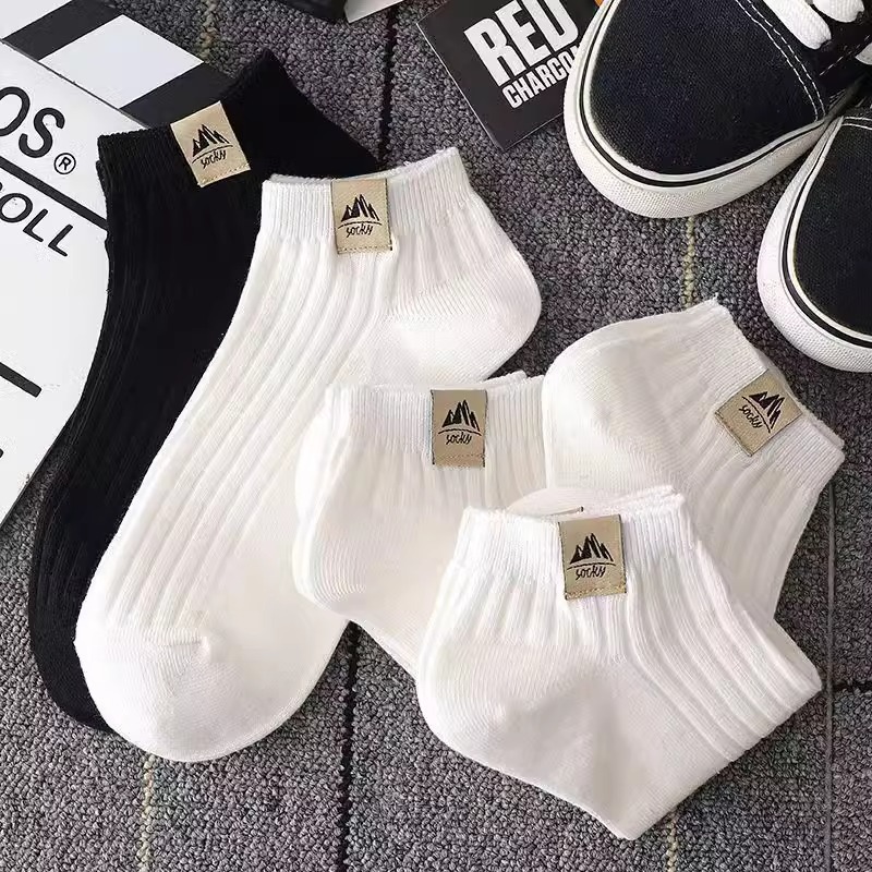 양말 남자 쇼트 양말 봄과 여름 솔리드 컬러 자수 올 매치 땀 흡수 탈취제 통기성 로우 탑 스포츠 양말 보트 양말