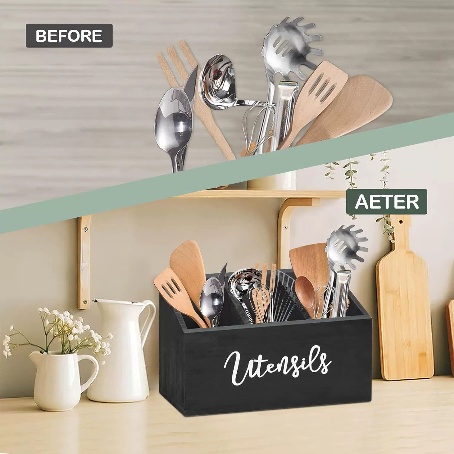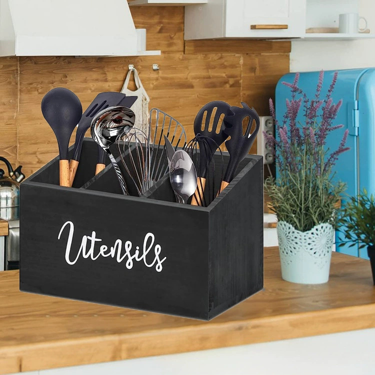 원목 칼, 포크, 스푼 보관함, 테이블 조리기구 보관함, 원목 주방 식기류 가정용