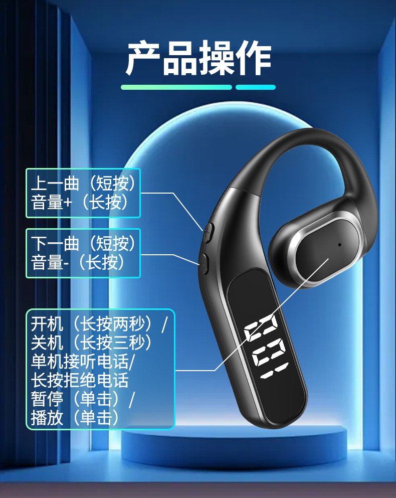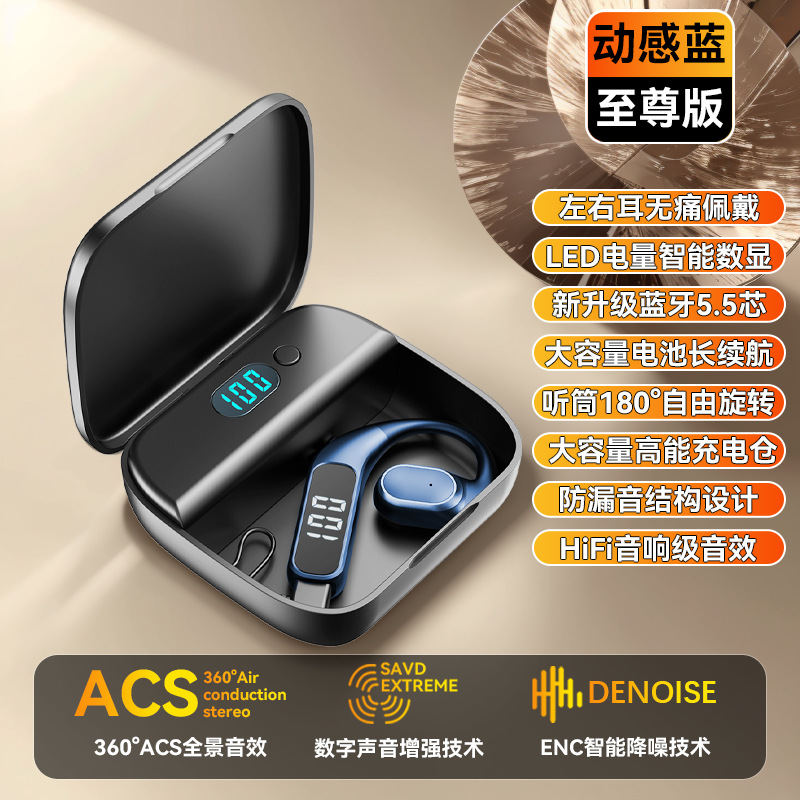 새로운 무선 블루투스 헤드셋 F62 귀 비즈니스 디지털 공기 전도 매달려 귀 긴 내구성 휴대 전화 유니버설