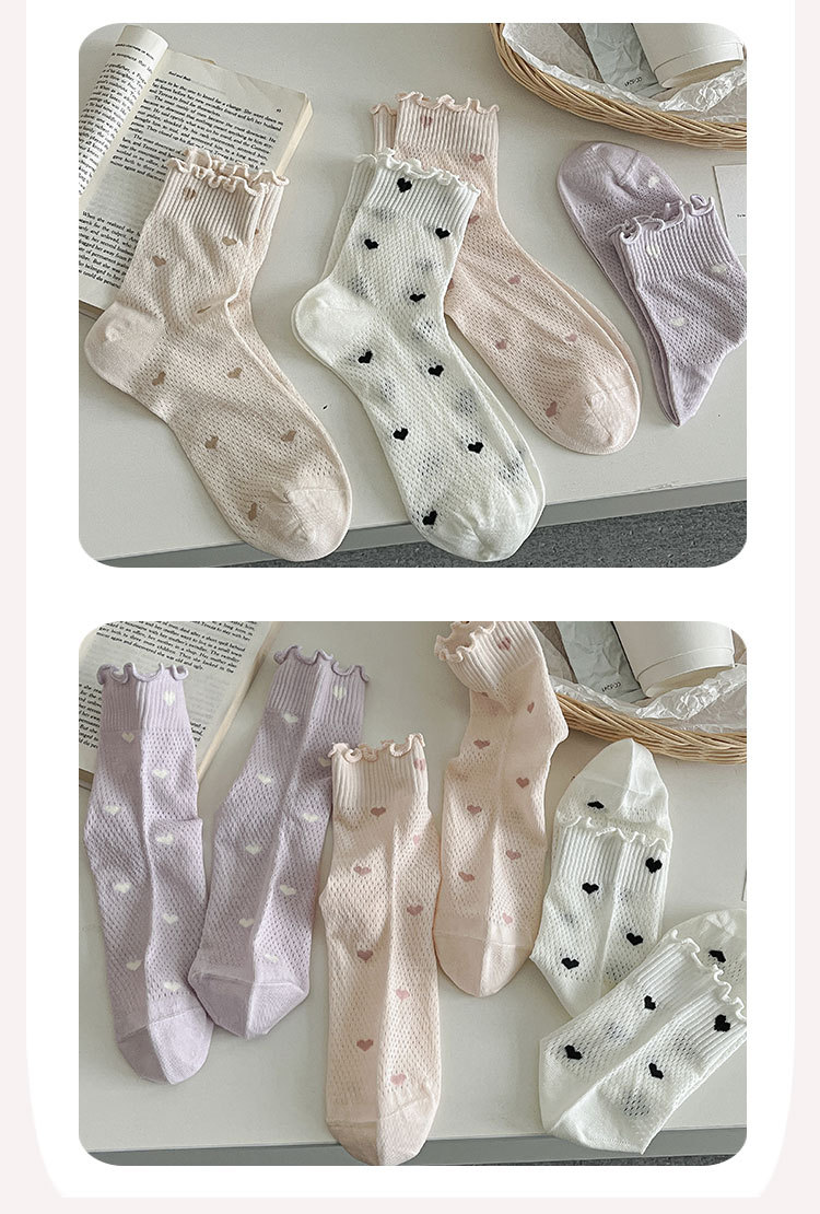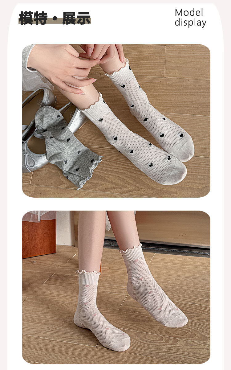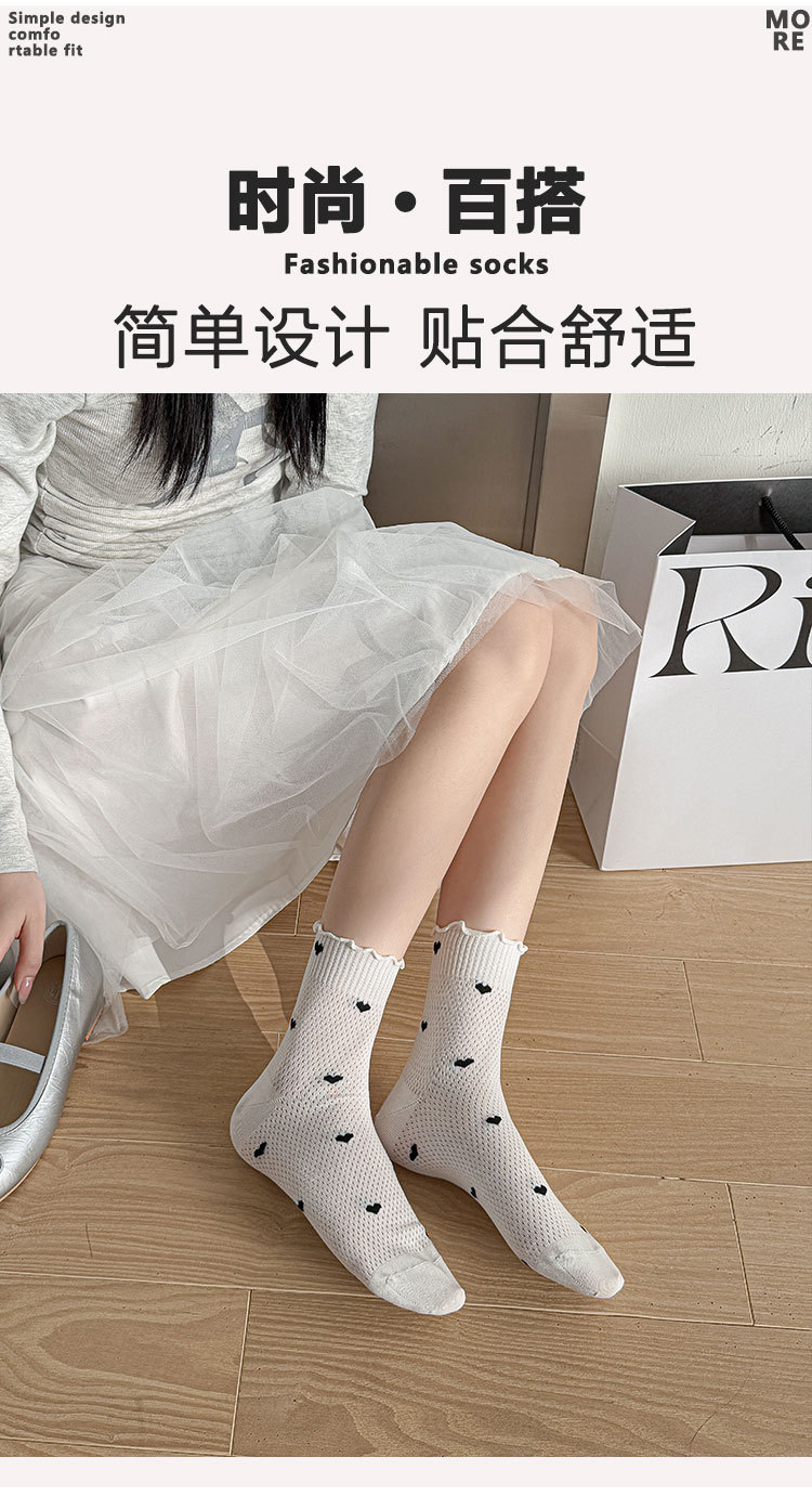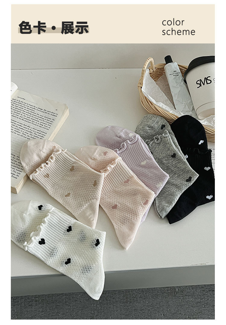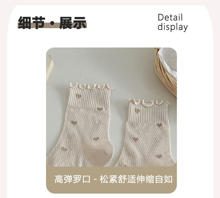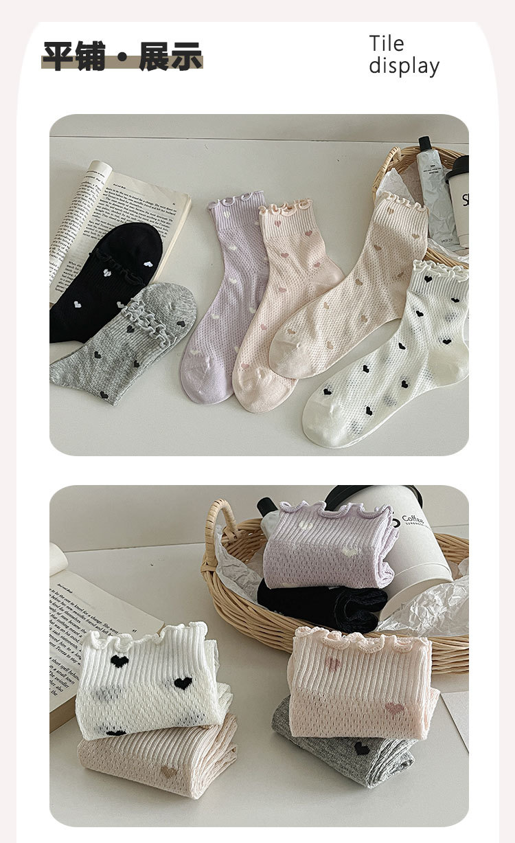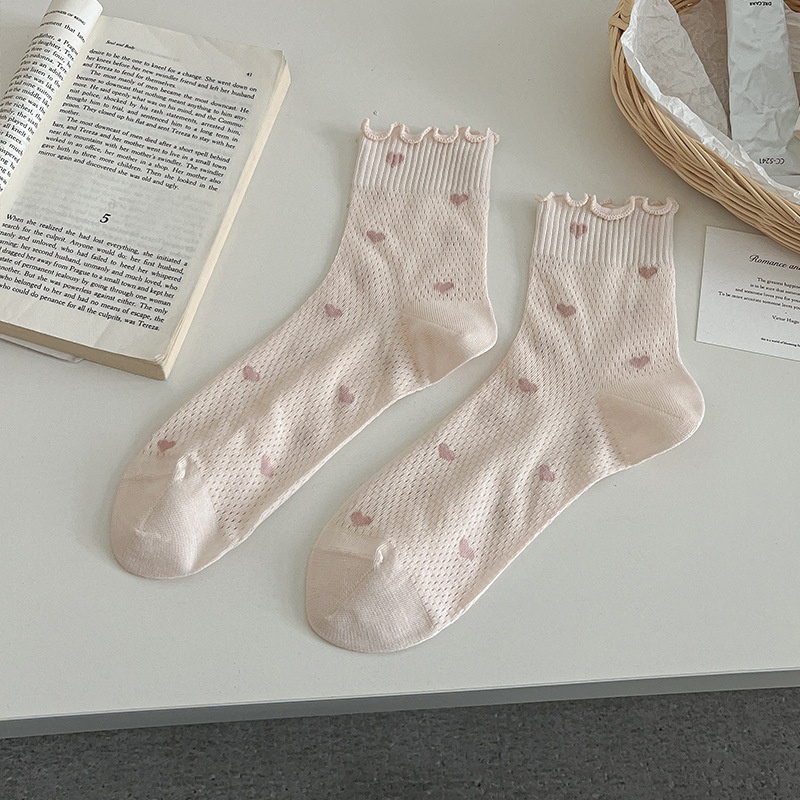우드 이어 양말 여성 미드 튜브 양말 봄과 여름 얇은면 양말 메쉬 통기성 다재다능한 레이스 하트 더미 양말스토어 가기