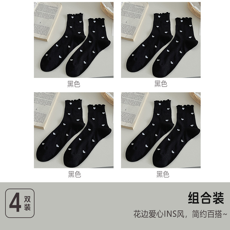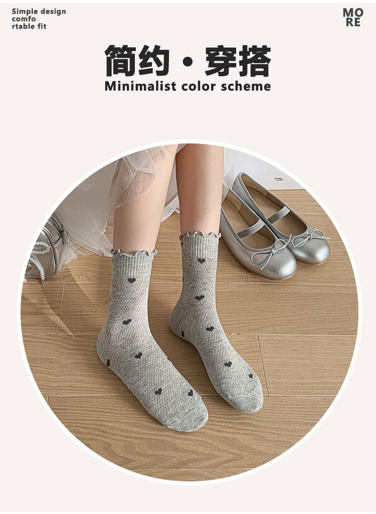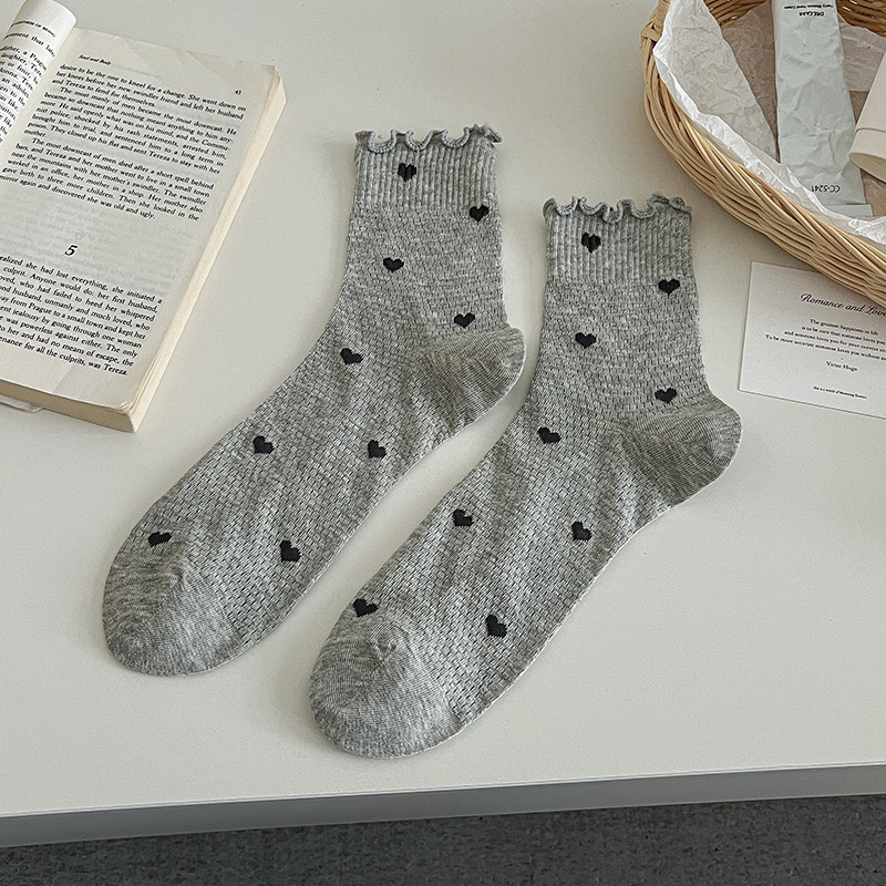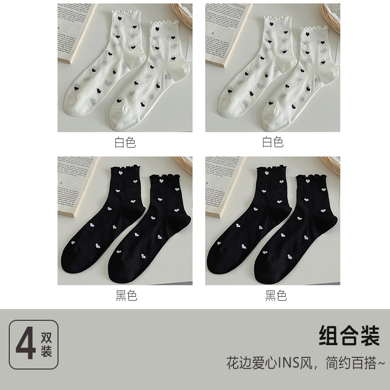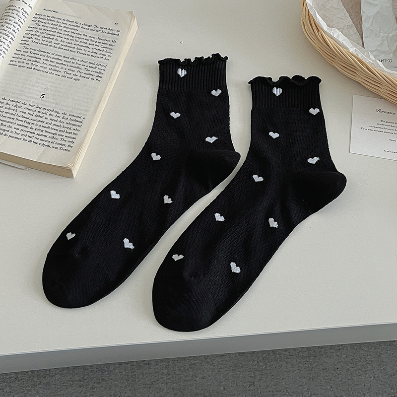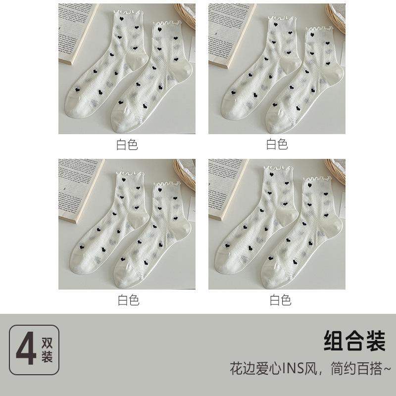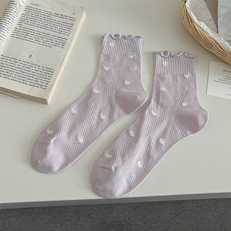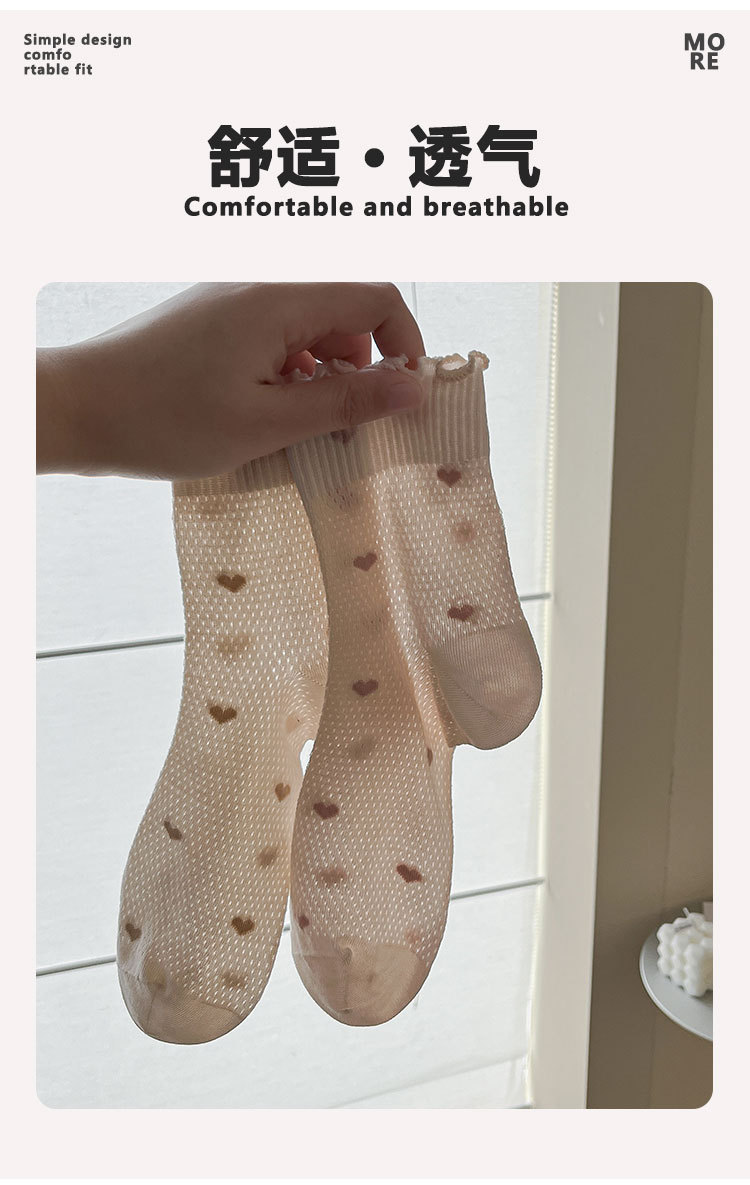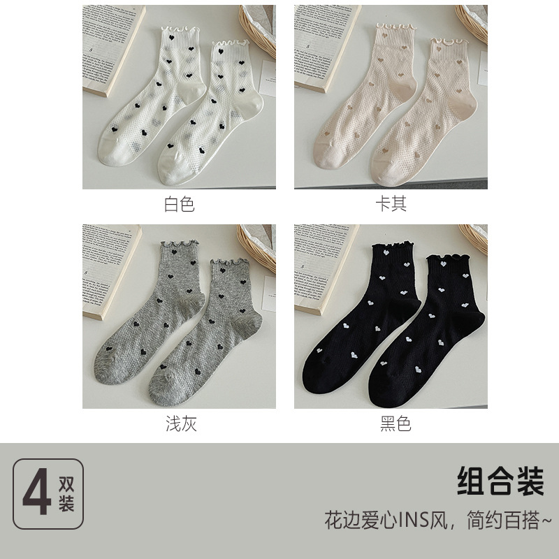 우드 이어 양말 여성 미드 튜브 양말 봄과 여름 얇은면 양말 메쉬 통기성 다재다능한 레이스 하트 더미 양말스토어 가기