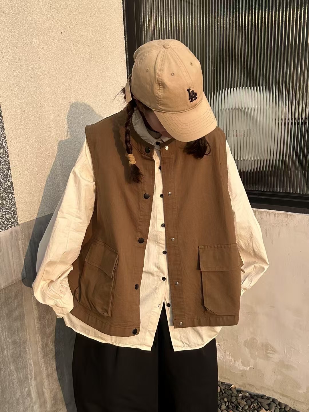 조끼 2025 봄 새로운 쌓인 싱글 브레스트 조끼 여성 일본식 레트로 라운드 넥 재킷스토어 가기