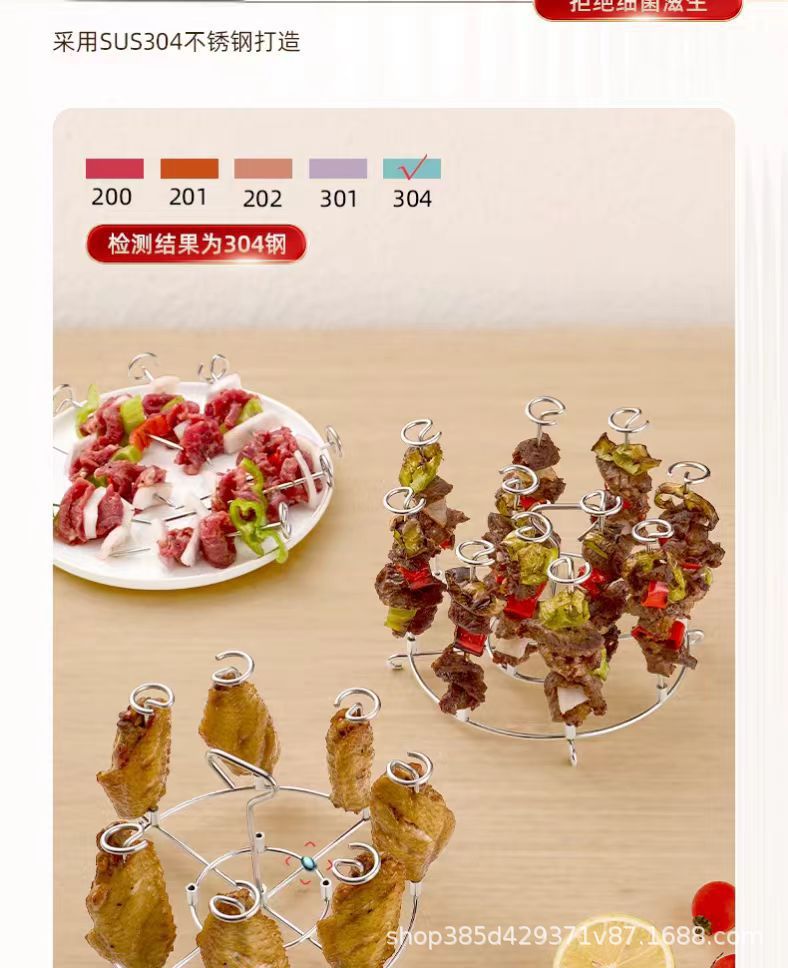 304 스테인레스 스틸 멀티 바늘 바베큐 그릴 에어 프라이어 로스트 스틱과 바늘이 달린 수직 스케밥 그릴 그릴 용 국경 특별스토어 가기