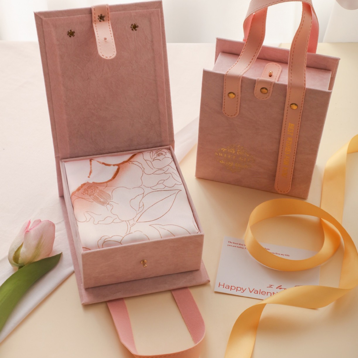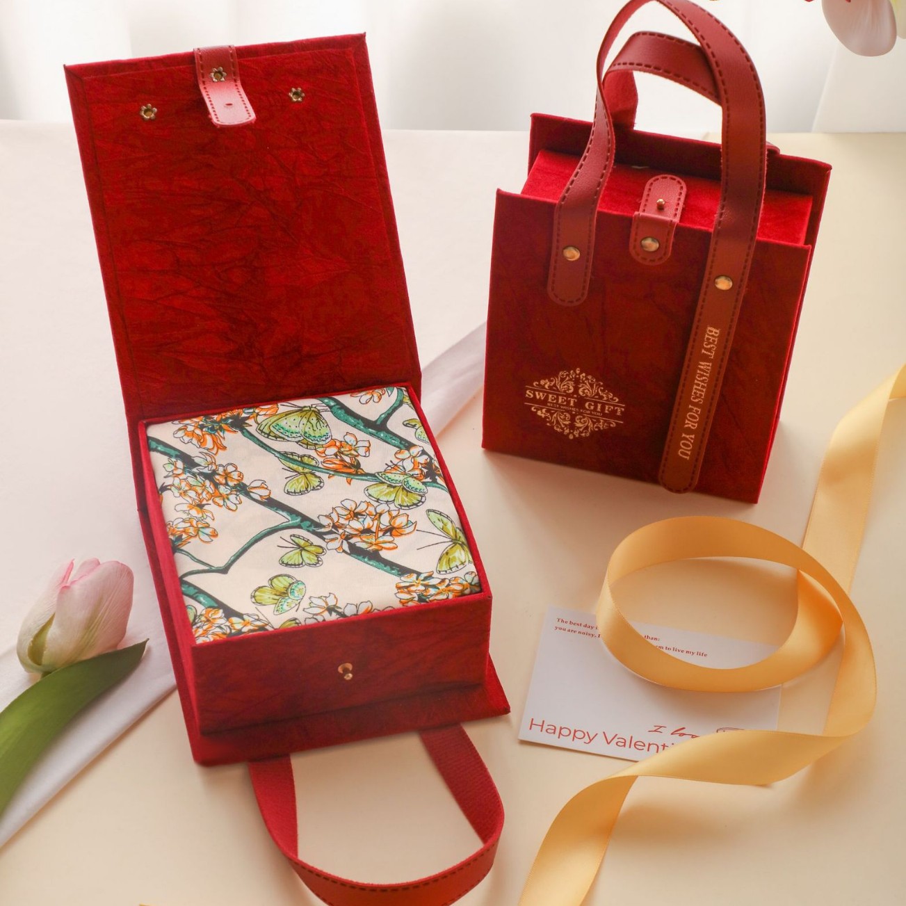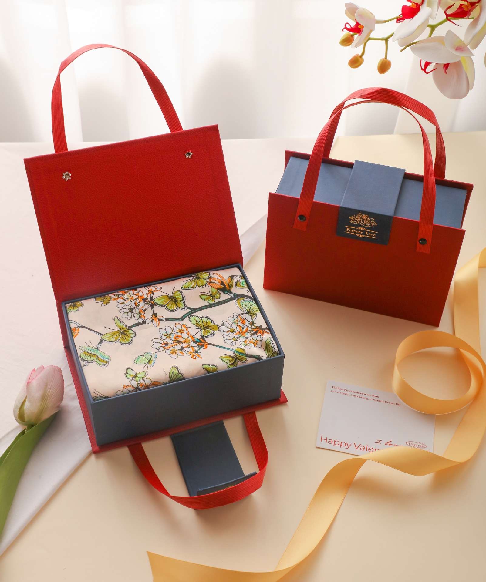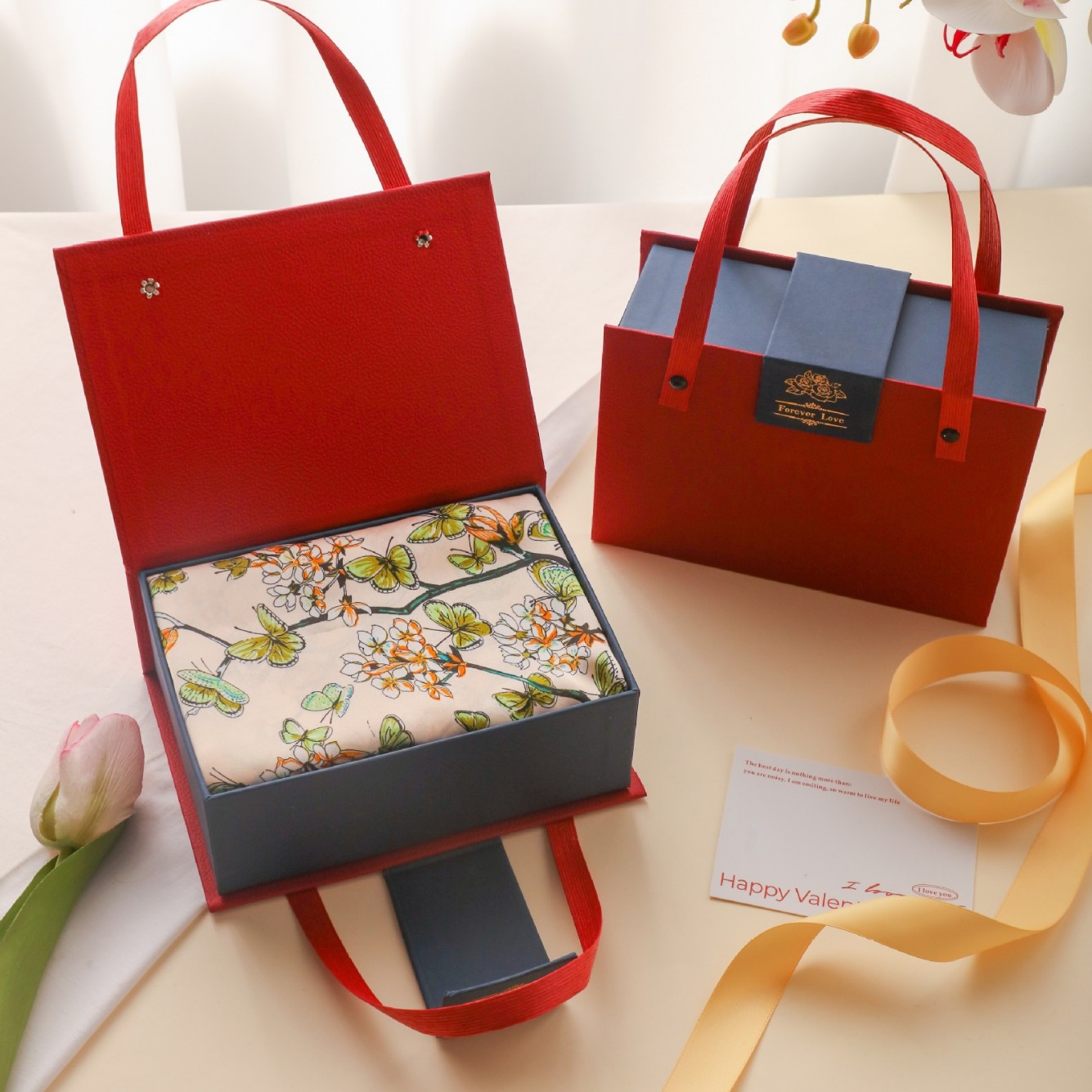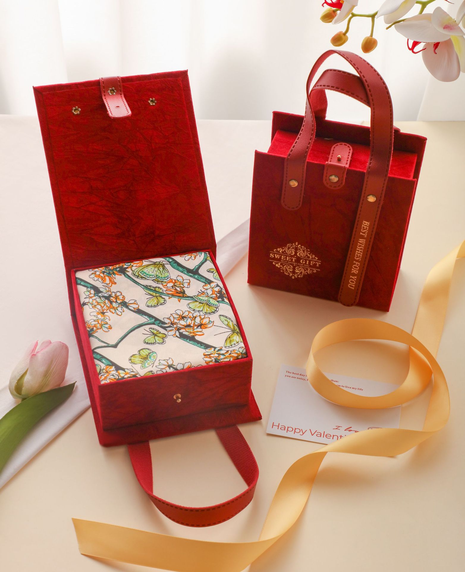 새로운 동반 선물 하이 엔드 실크 스카프 상자 발렌타인 데이 커플 립스틱 실크 스카프 선물 상자 어머니 손 빈 상자