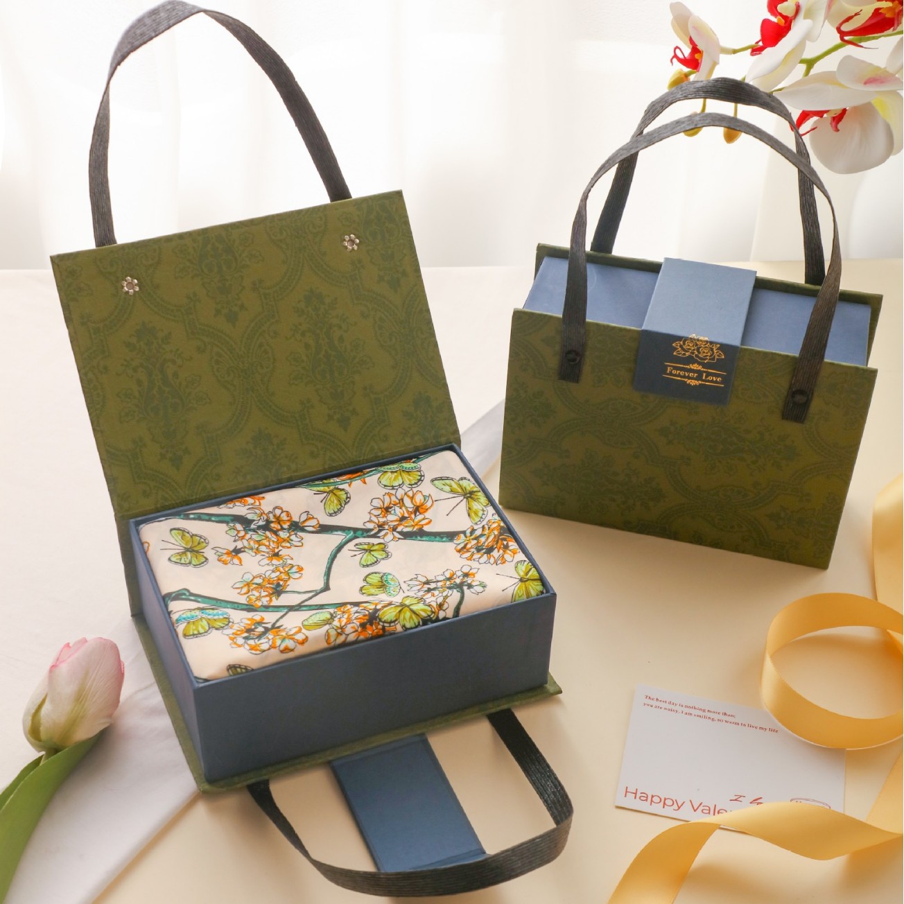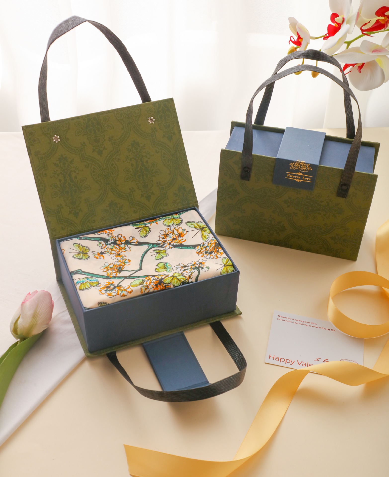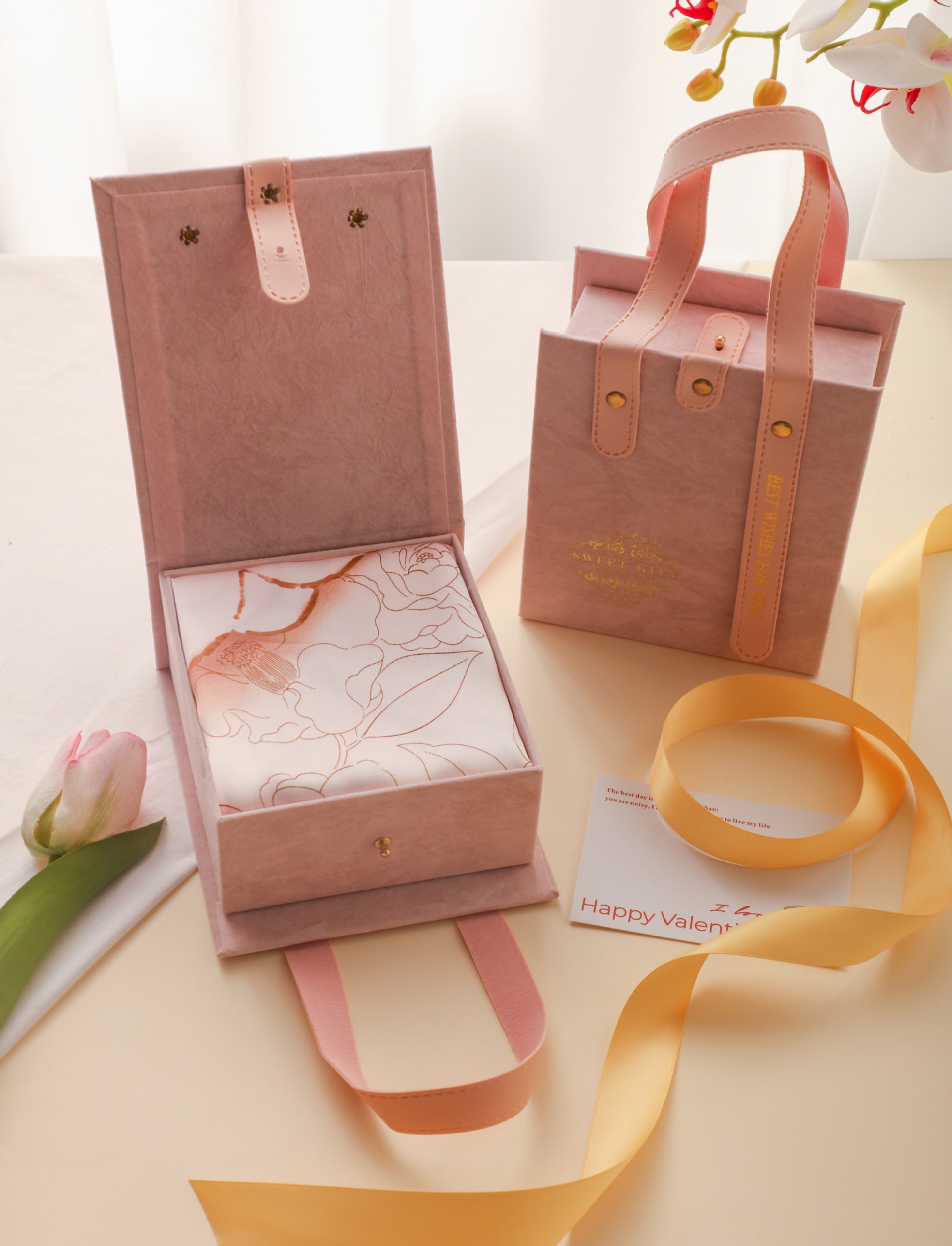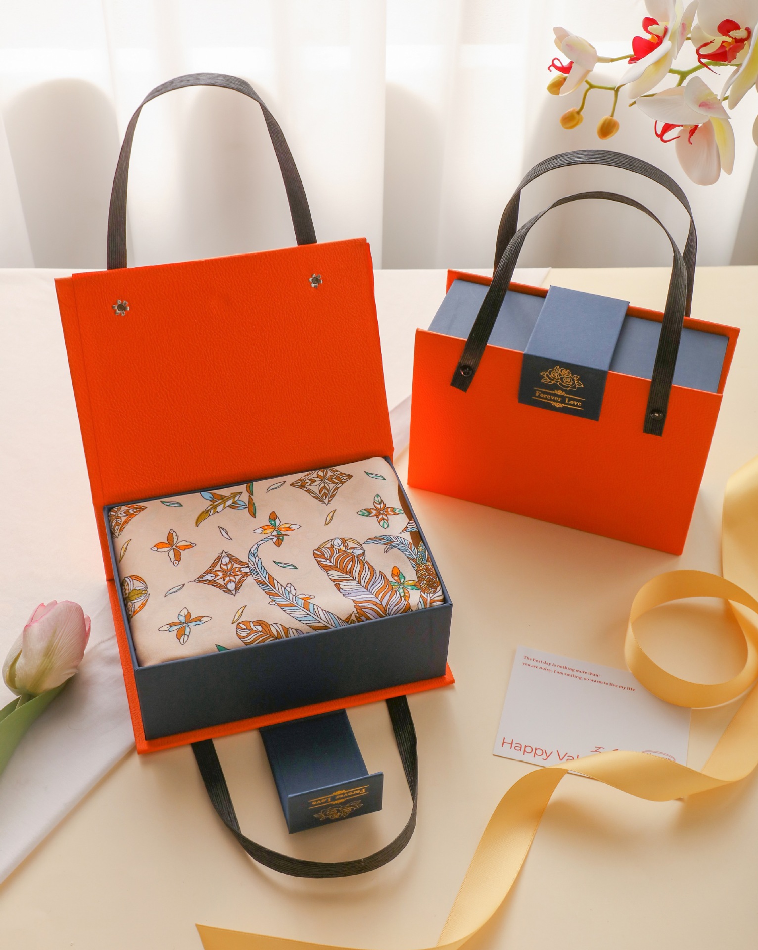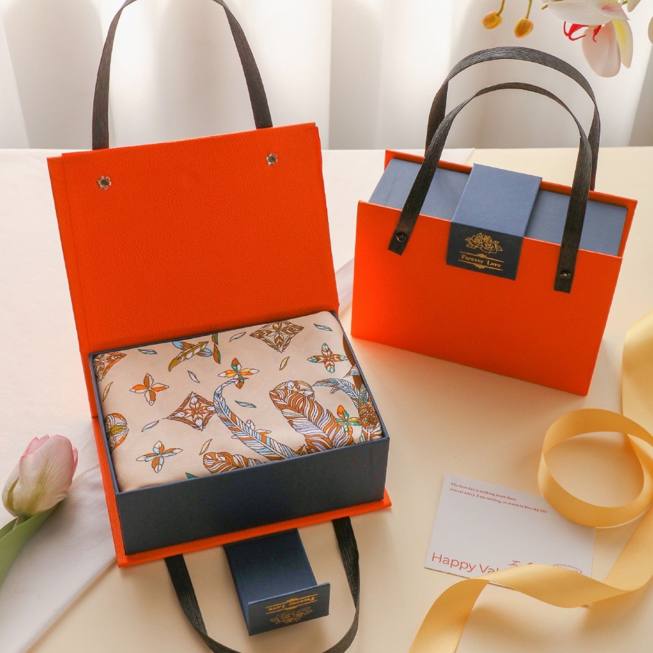 새로운 동반 선물 하이 엔드 실크 스카프 상자 발렌타인 데이 커플 립스틱 실크 스카프 선물 상자 어머니 손 빈 상자