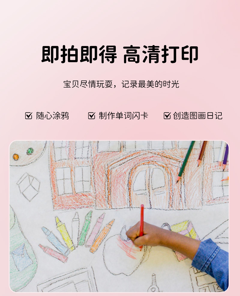 • 핑크/귀여운 고양이 폴라로이드-2000W-1 롤 인쇄 용지 + 무료 끈