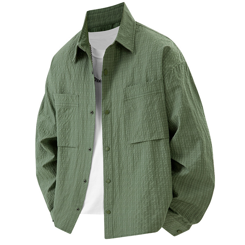 2025 봄과 여름 안티 필링 피부 친화적 인 옷깃 셔츠 남성 작업복 캐주얼 올 매치 느슨한 긴팔 셔츠 코트