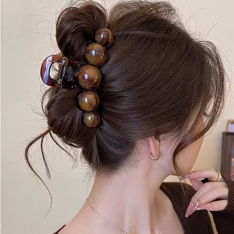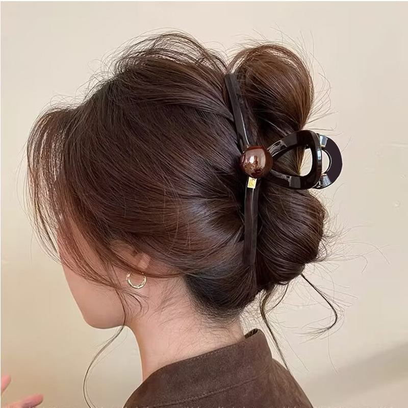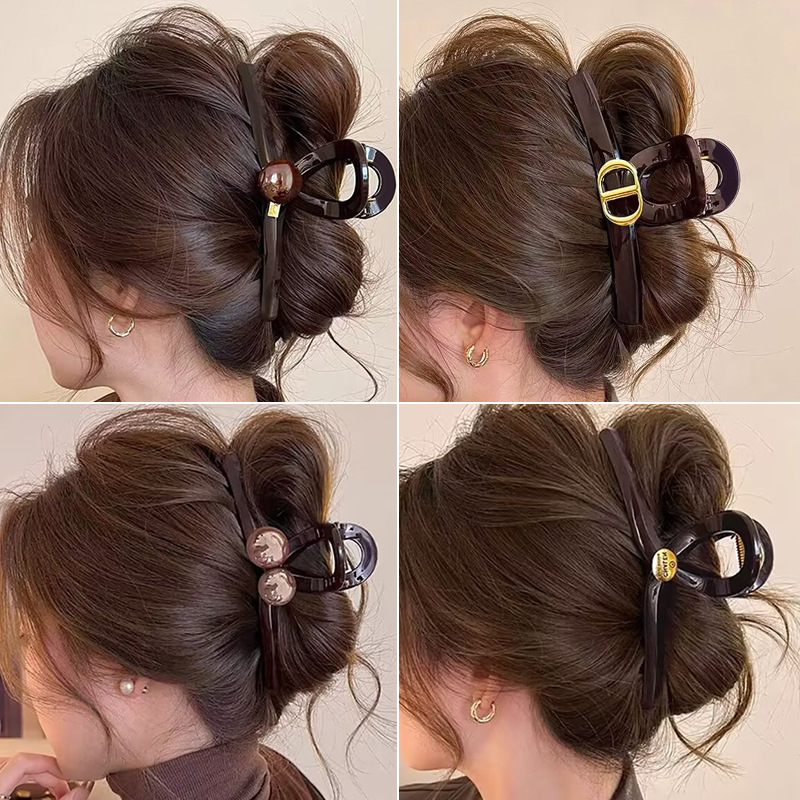 가벼운 고급 대형 진주 다크 브라운 넥타이 탭 클립 머리 머리 상어 클립 헤어 액세서리 여성의 2025 신식 헤드웨어 헤어 클립스토어 가기