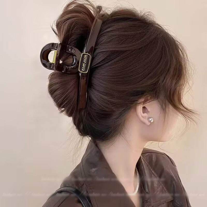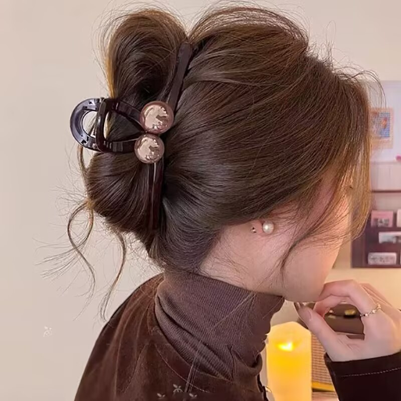 가벼운 고급 대형 진주 다크 브라운 넥타이 탭 클립 머리 머리 상어 클립 헤어 액세서리 여성의 2025 신식 헤드웨어 헤어 클립