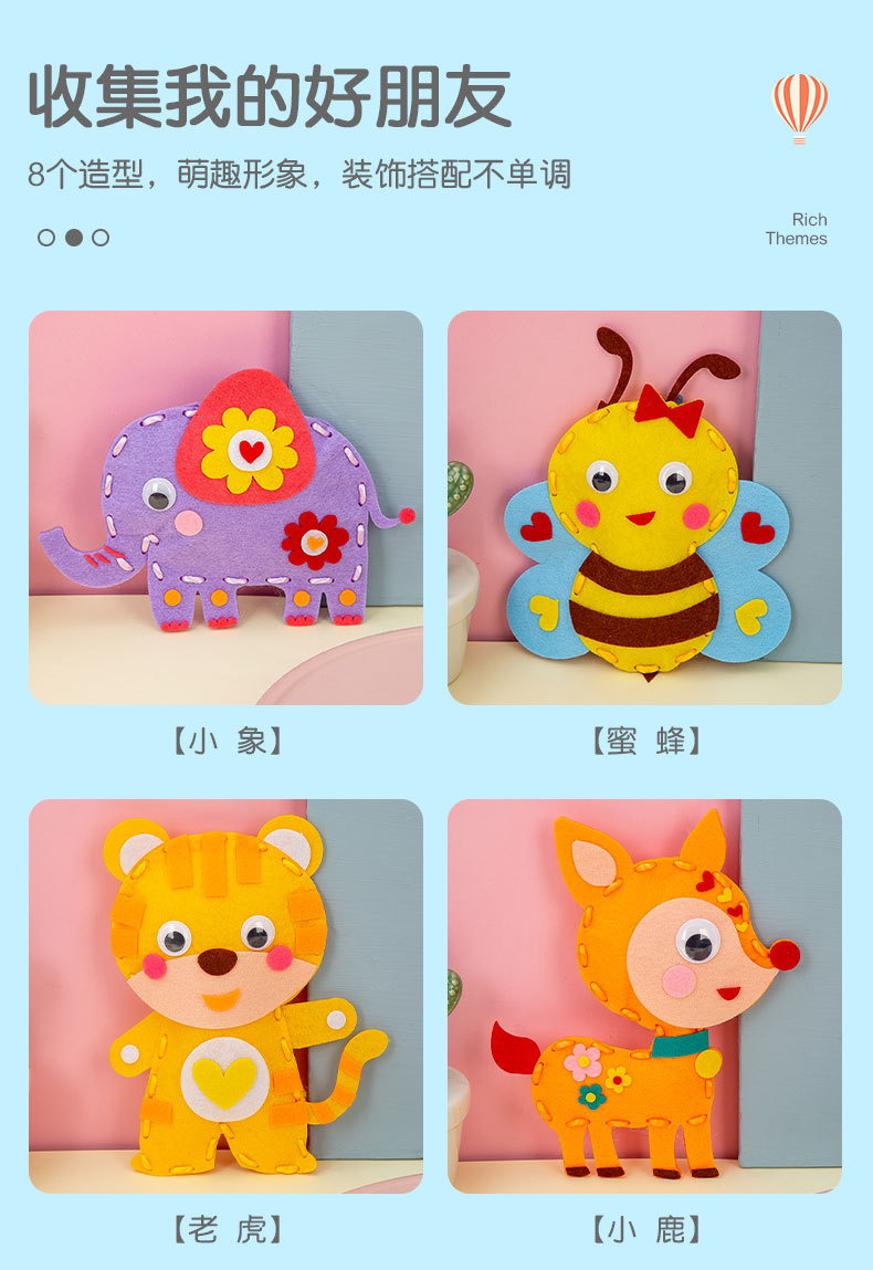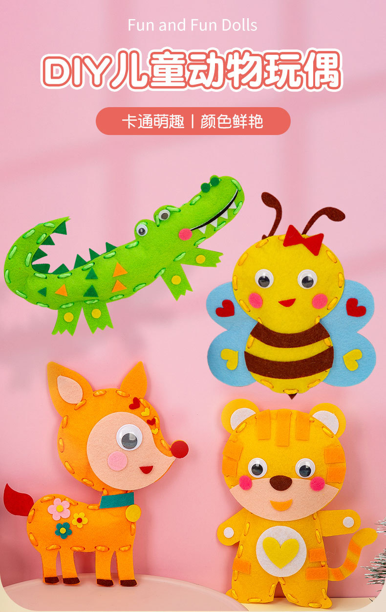 어린이 봉제 및 봉제 음악 수제 DIY 생산 재료 가방 부직포 장난감 유치원 창조적 인 페이스트 동물 인형스토어 가기