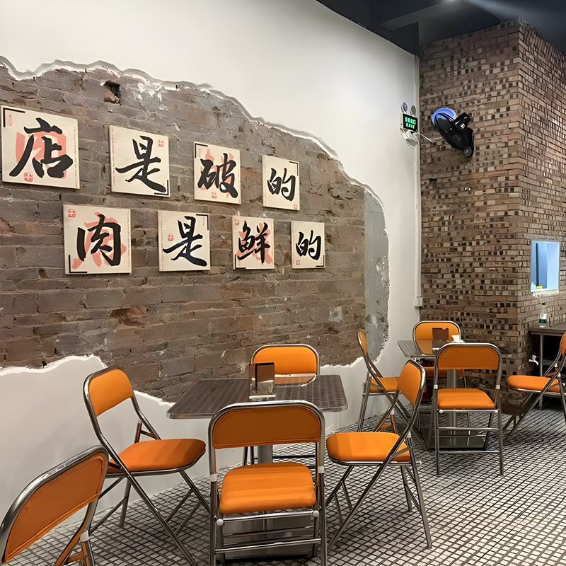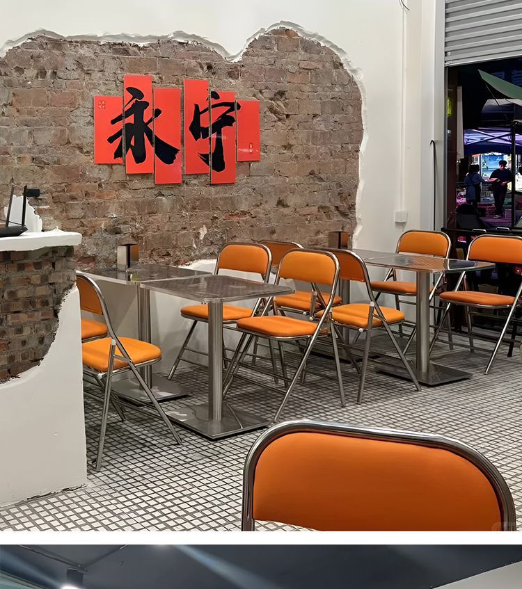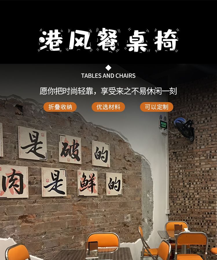 홍콩 스타일의 차 레스토랑 스낵 바 테이블과 의자 조합 매운 뜨거운 음식 마구간 바베큐 상점 스테인레스 스틸 접이식 의자 상업스토어 가기