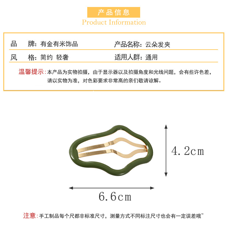 구름 모양 헤어핀, 오일 드립 기본 스타일, 심플한 앞머리 옆머리용, 우아한 분위기의 BB 클립, 다용도 2025 신상품스토어 가기