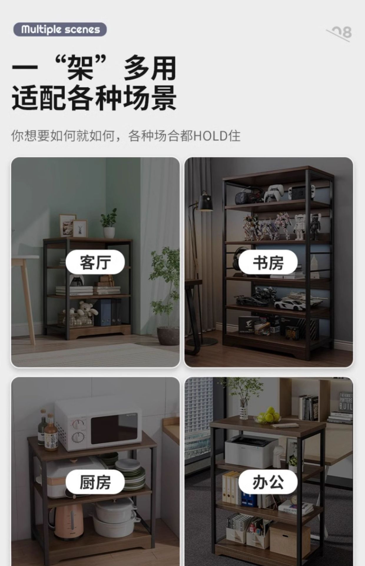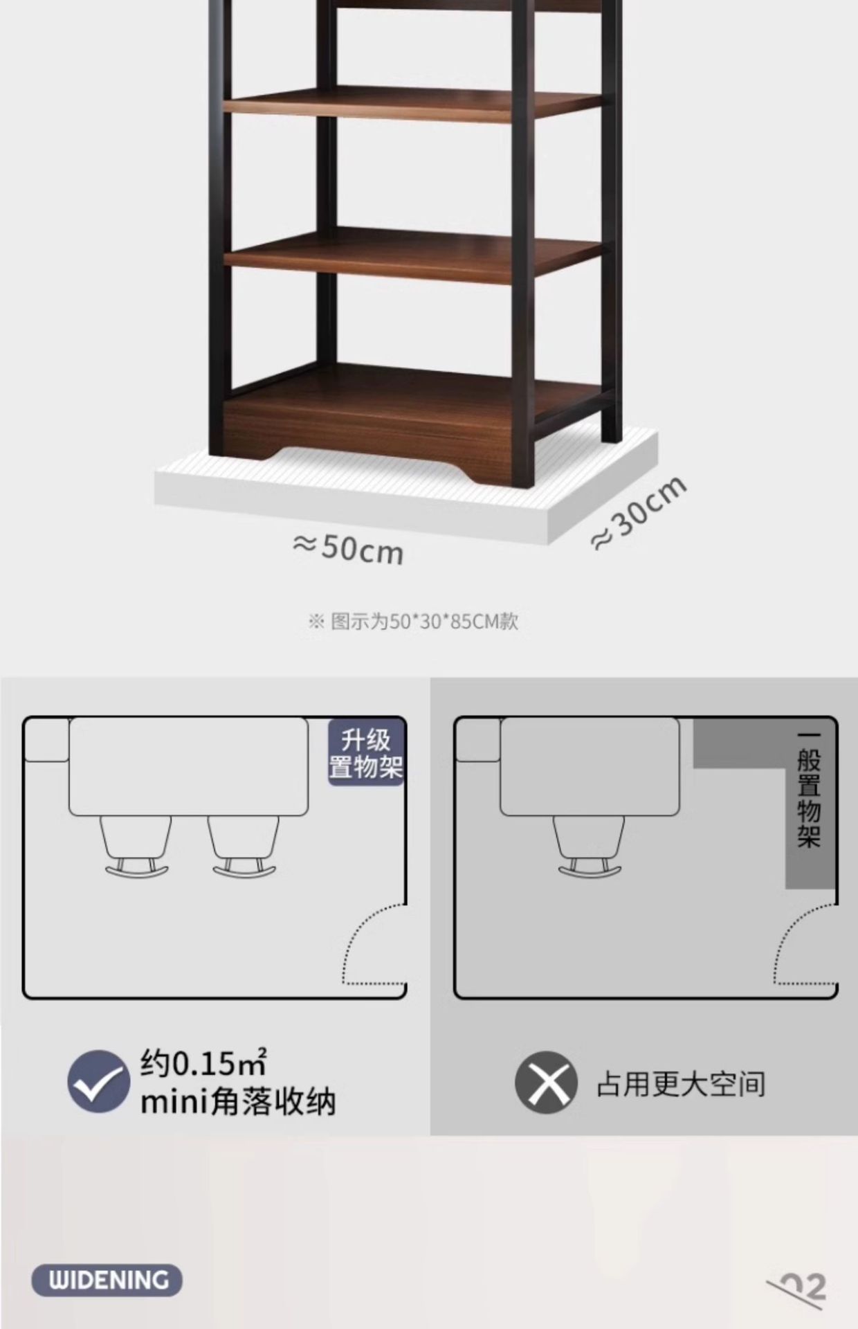 • [업그레이드된 메쉬바구니 모델] 4단★브러시드 블랙 오크 색상 - 길이 80 높이 100