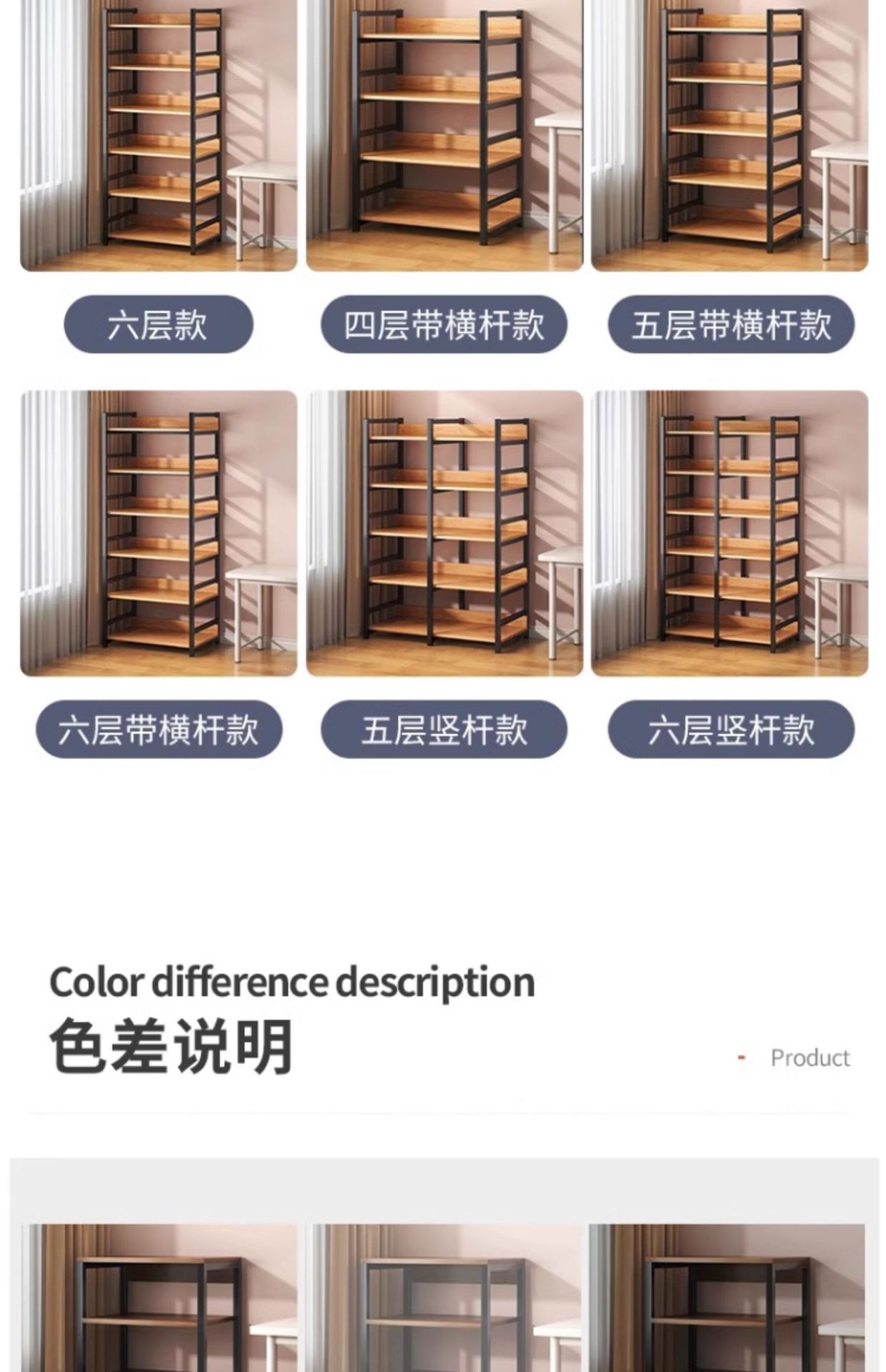 • [새롭게 업그레이드된 하단 크로스바] 6단 60x30x174cm - 노란색 배나무 색상 [내하중 강화]