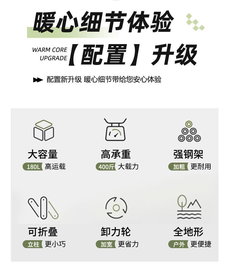 • 리어 플립 대형 8inch 와이드 휠 카키/더블 브레이크 + 접이식 테이블