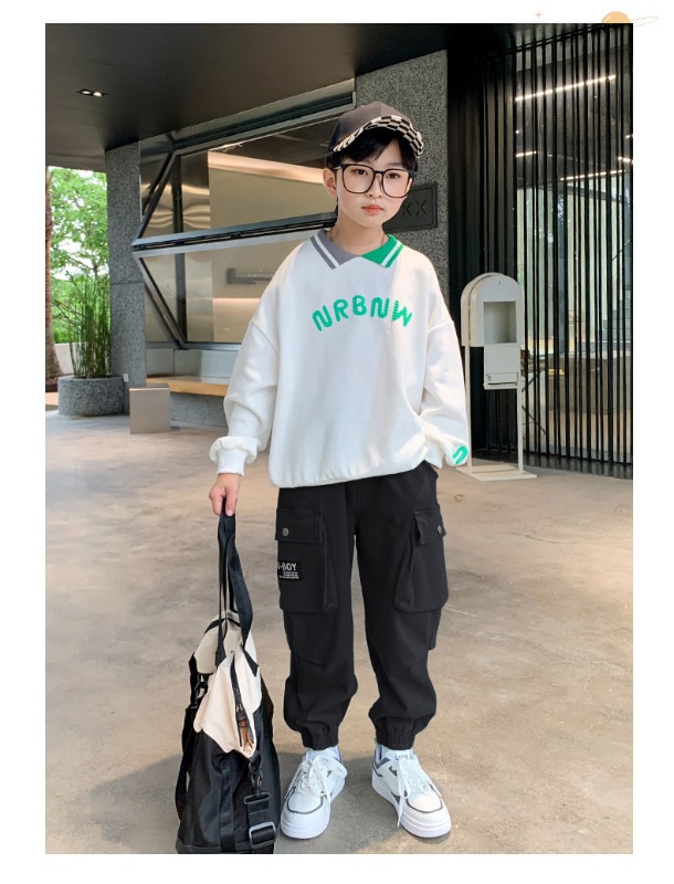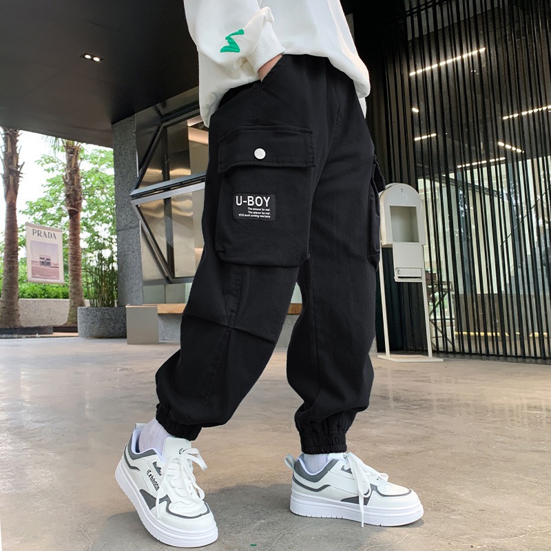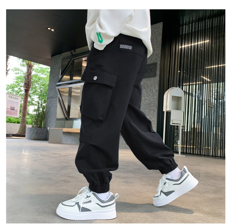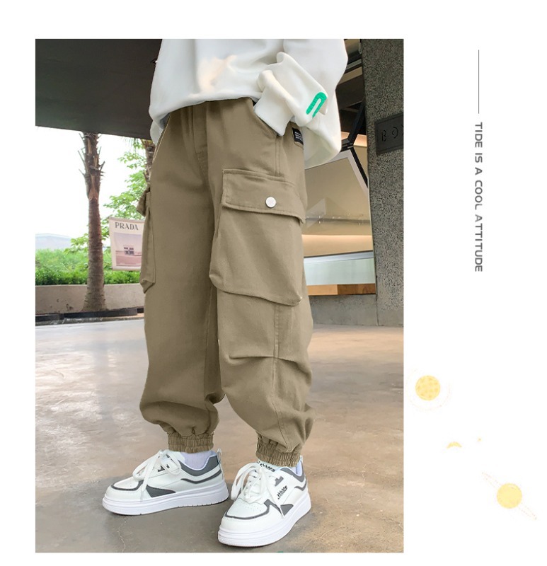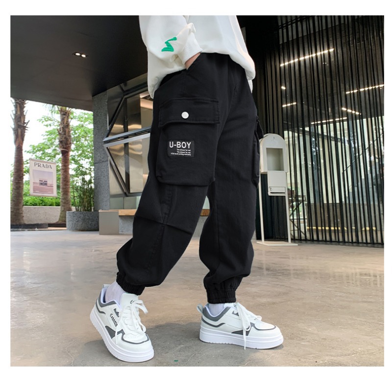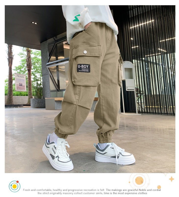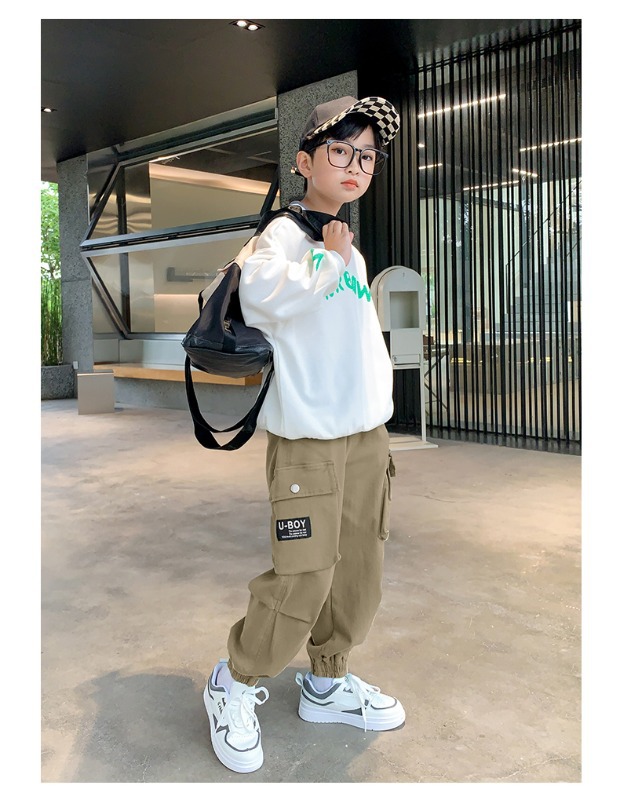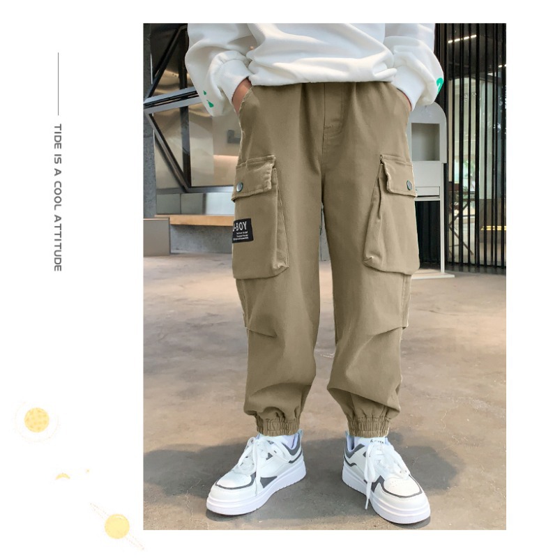 어린이 착용 소년 봄 바지 봄과 가을 2025 새로운 스타일 툴링 큰 소년의 봄 캐주얼 트렌디 바지스토어 가기