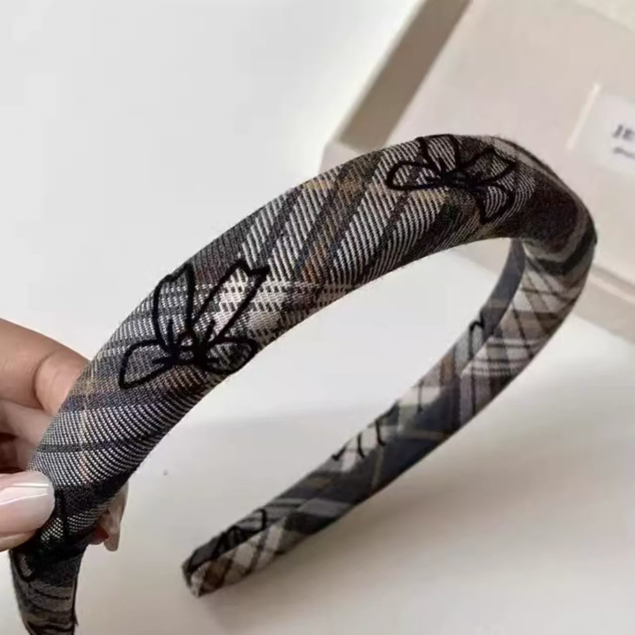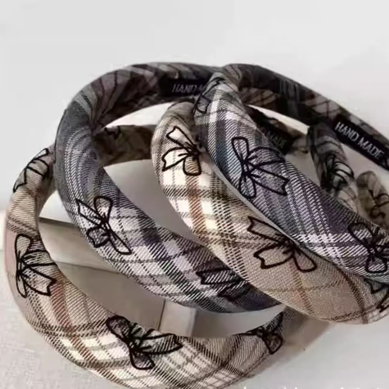 프랑스 스타일 레트로 대학 스타일 격자 무늬 활 시리즈 패션 올 매치 헤드 밴드 여성 아메리칸 스타일 포니 테일 헤드 밴드 헤어 액세서리