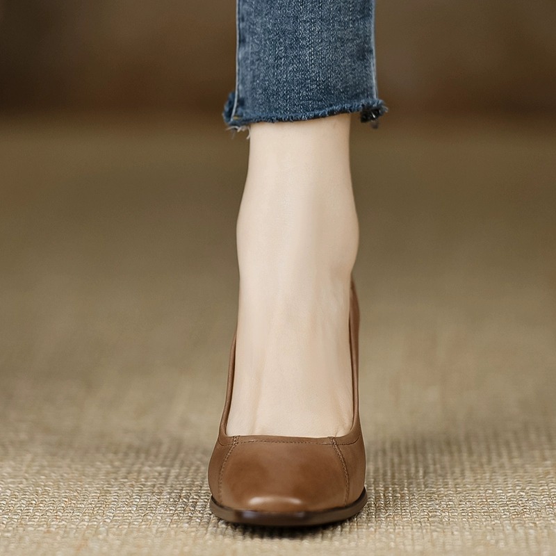 새로운 중국 복고풍 얕은 입 싱글 신발 스퀘어 발가락 통근 봄과 가을 모든 경기 피곤하지 않은 발 전문 작업 신발 두꺼운 힐 하이힐