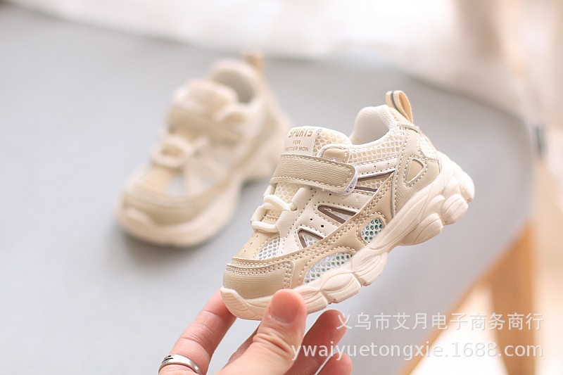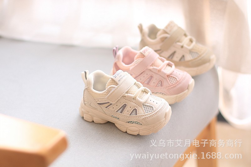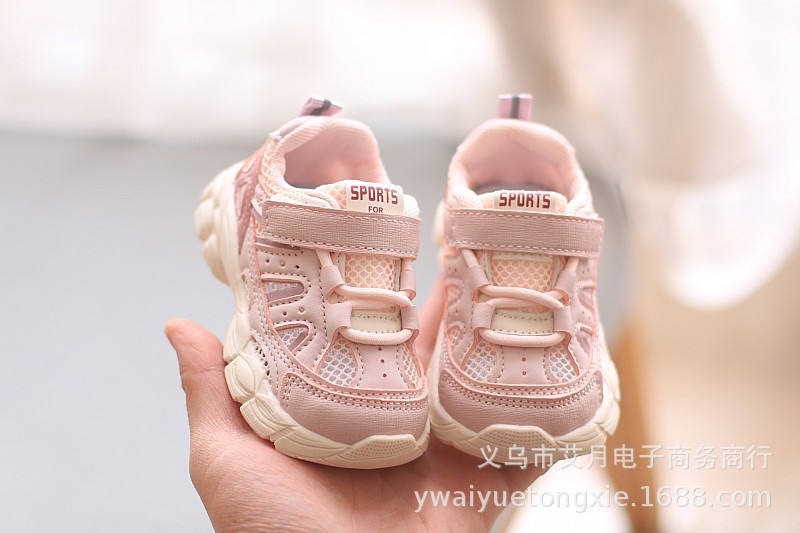 여름 새로운 아기 신발 소프트 단독 미끄럼 방지 중공 통기성 메쉬 운동화 봄과 가을 소년 소녀를위한 흰색 신발스토어 가기
