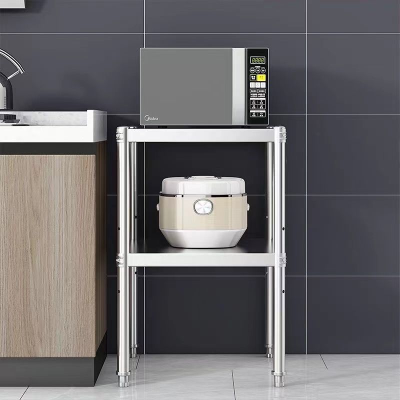 스테인레스 스틸 3 층 주방 랙 바닥에 서있는 다층 저장 선반 전자 레인지 용 다기능 저장 선반스토어 가기