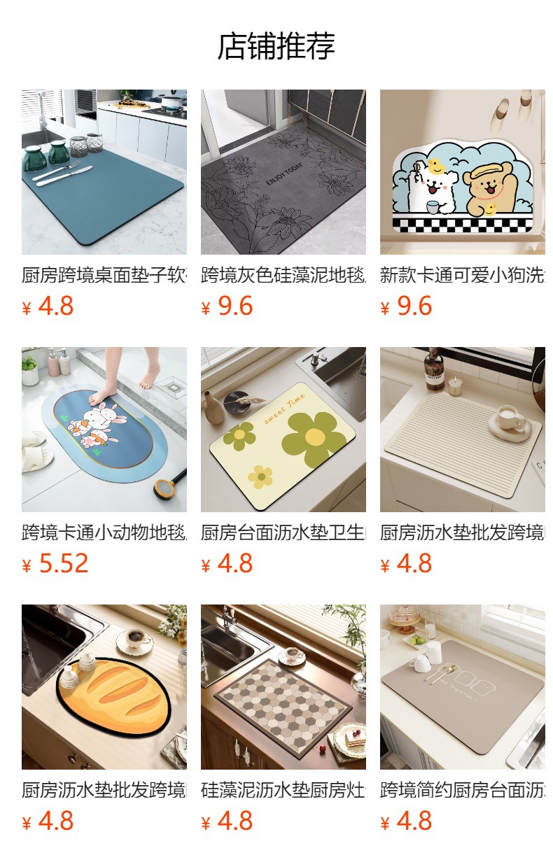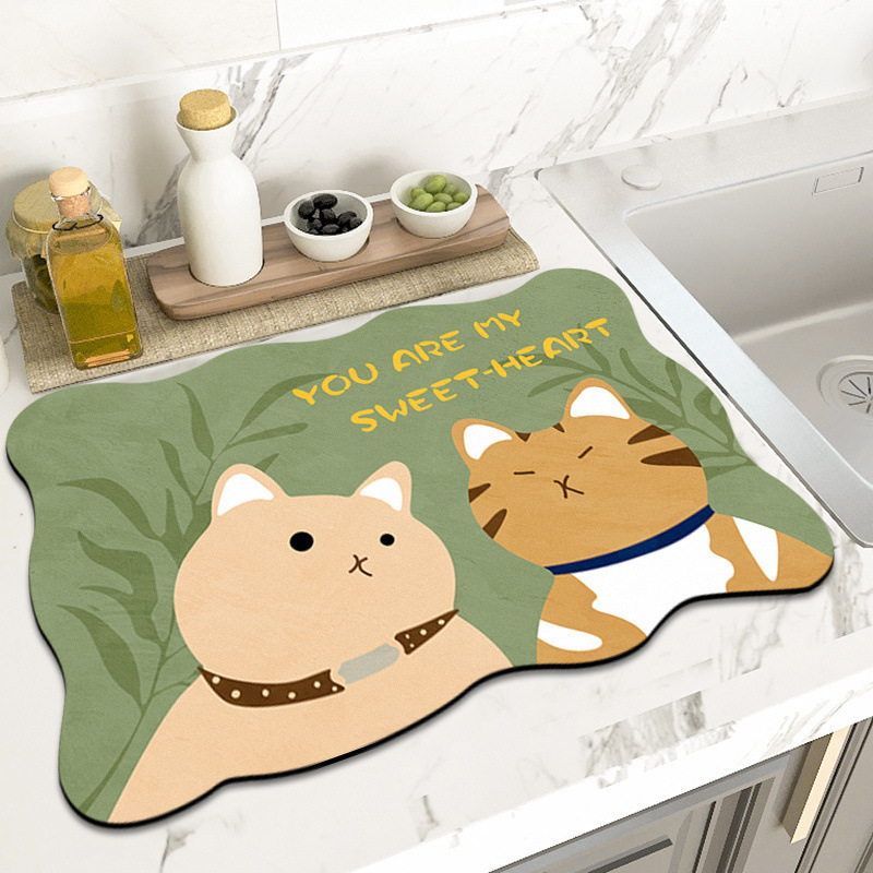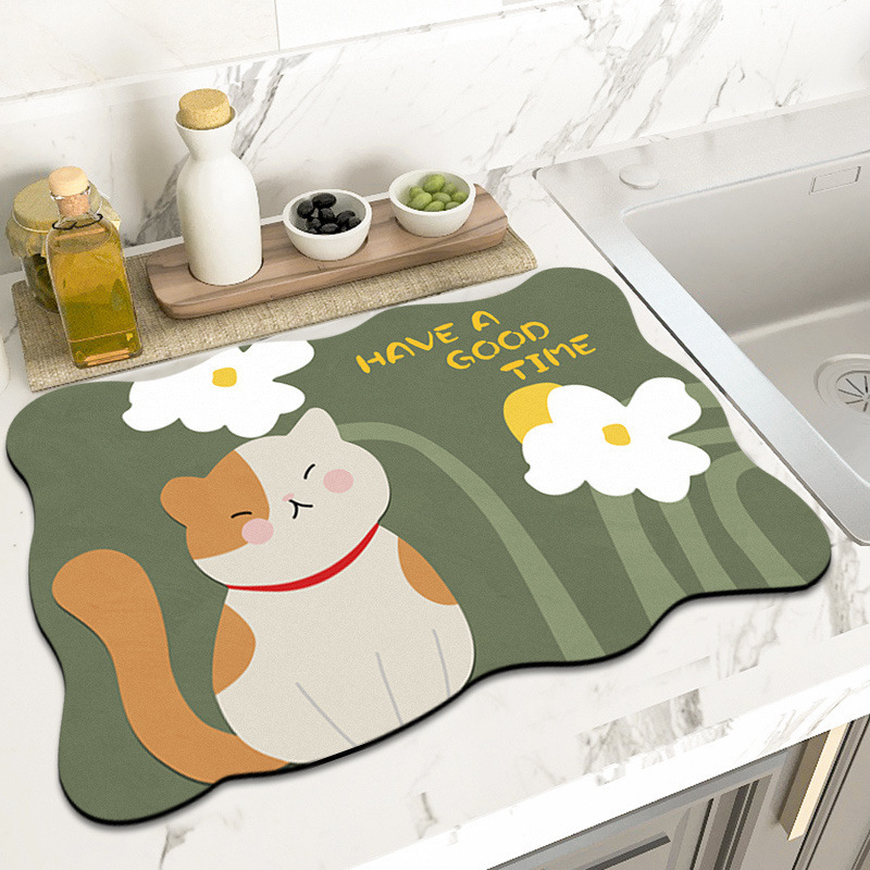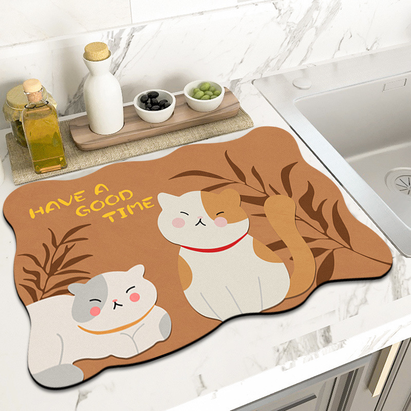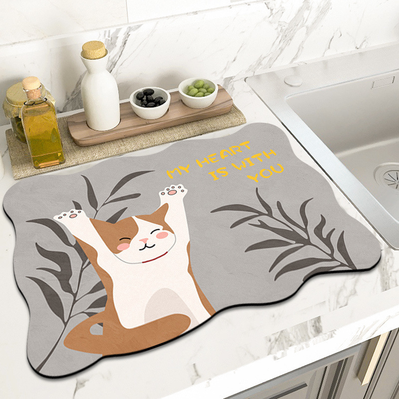 주방 배수구 매트 다이아몬드 머드 데스크탑 흡수성 매트 세면기 표면 방수 배치 열 절연 방지 빠른 건조 테이블 매트스토어 가기