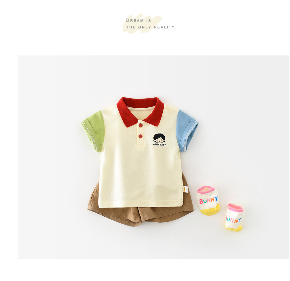 여름 2025 한국식 3 색 스티칭 비드 폴로 셔츠 어린이 신생아 아기 만화 티셔츠 52502스토어 가기