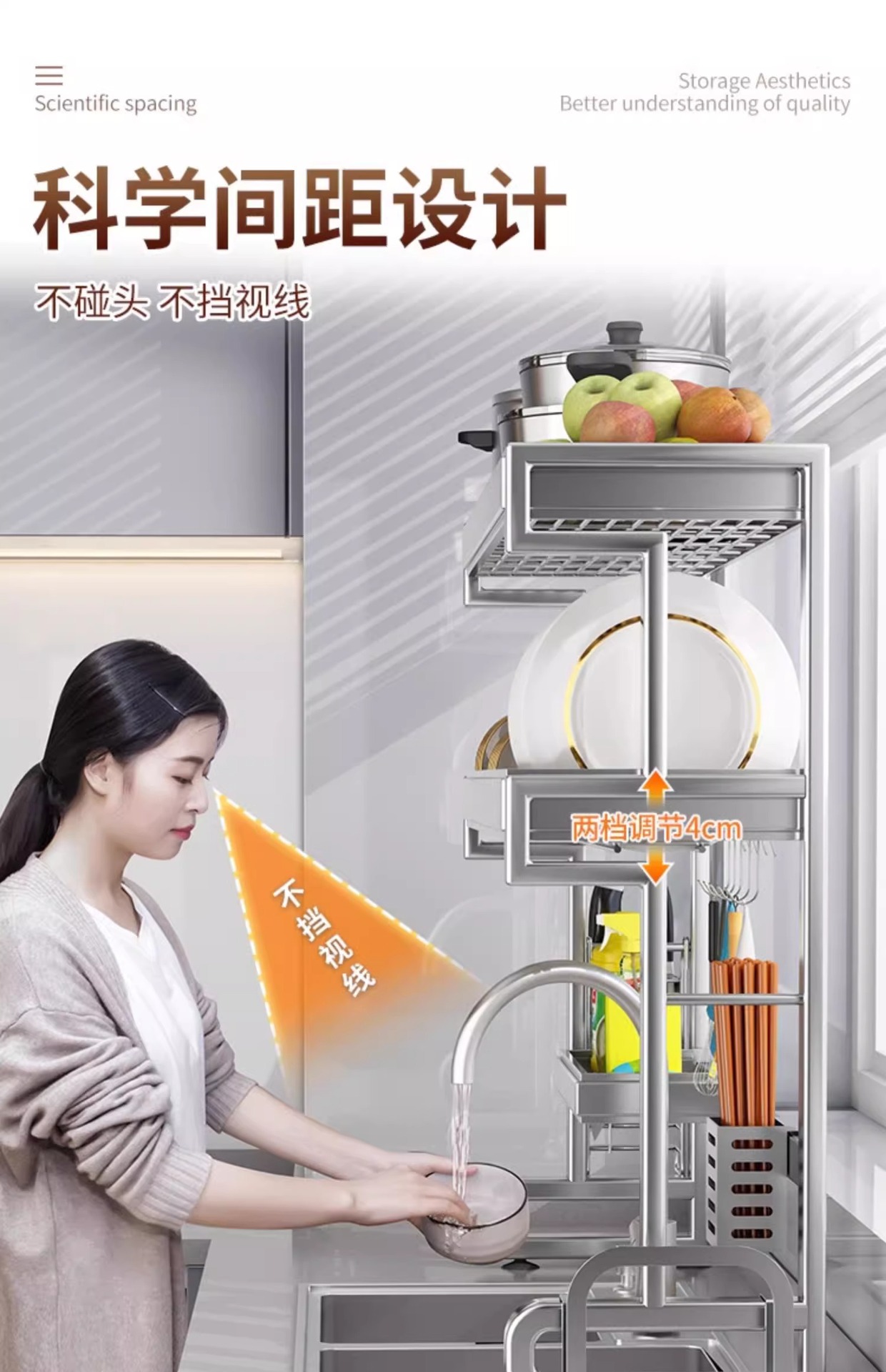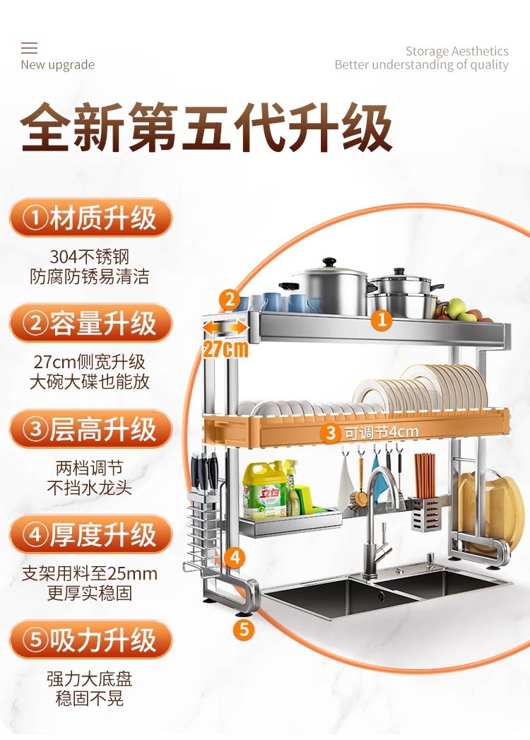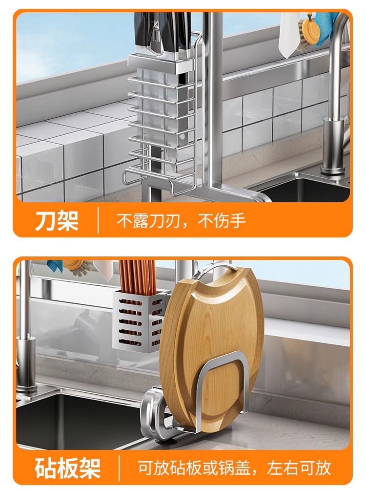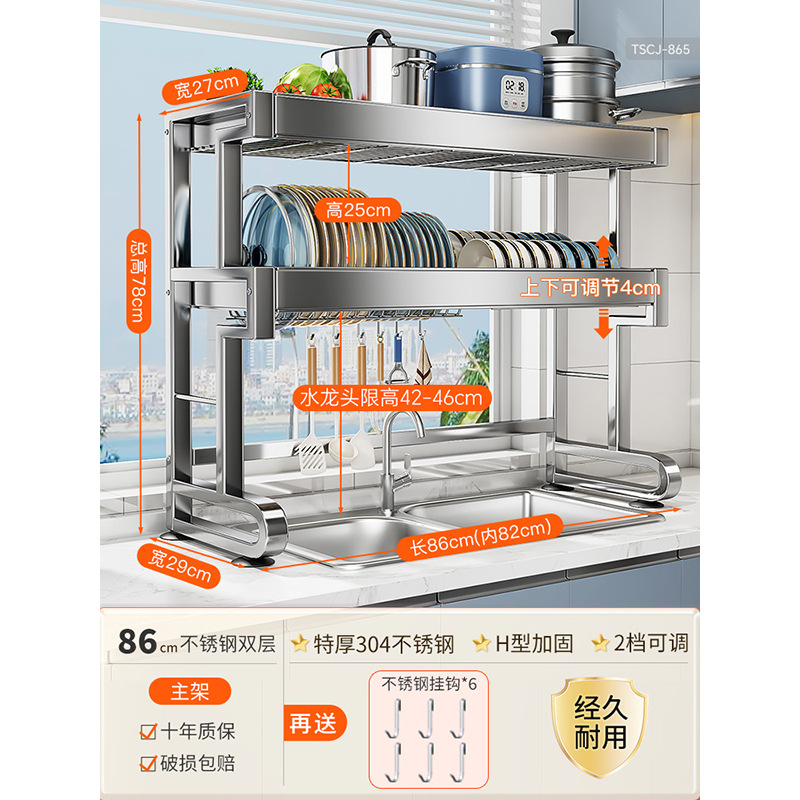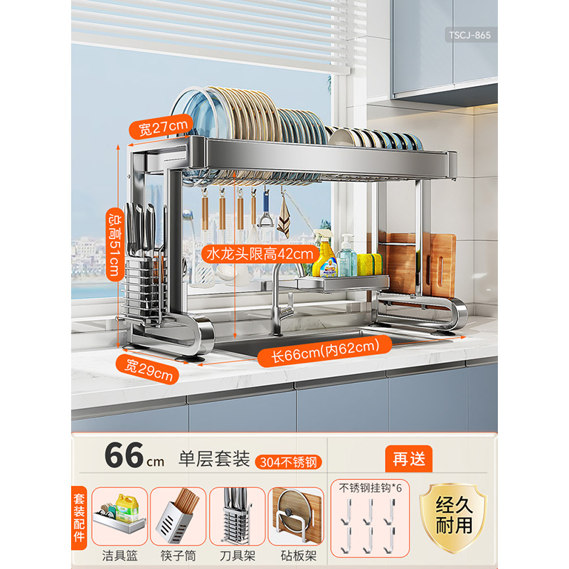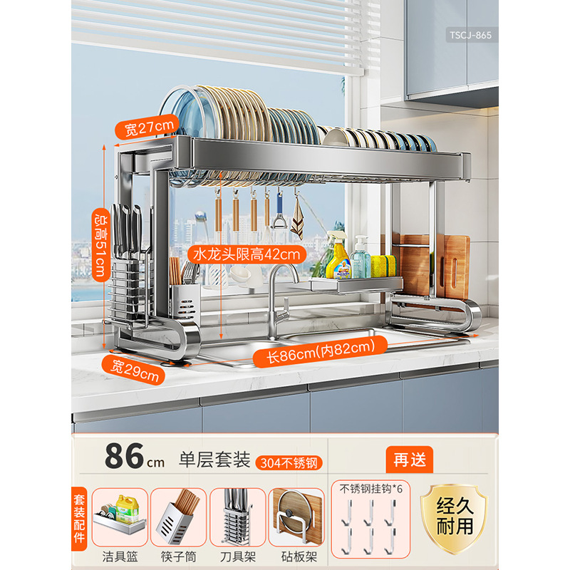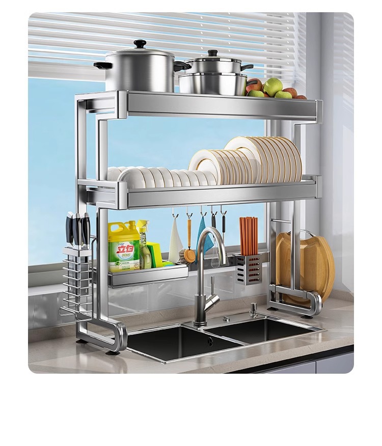 304 스테인리스 스틸 싱크대 접시 선반 다기능 배수 주방 캐비닛 위 접시 선반 물 필터 선반스토어 가기