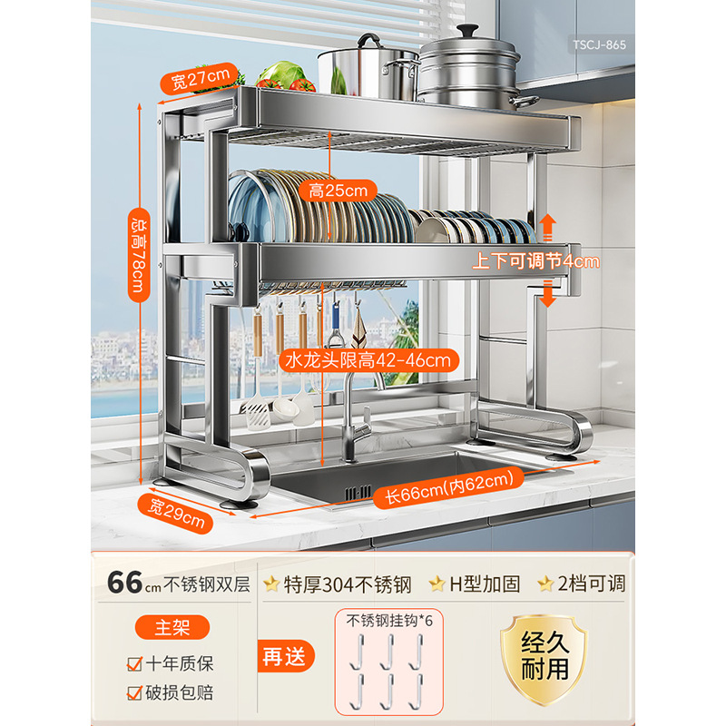 • [304 스테인레스 스틸] 더블 레이어 싱크 랙 95 길이 - 표준 구성