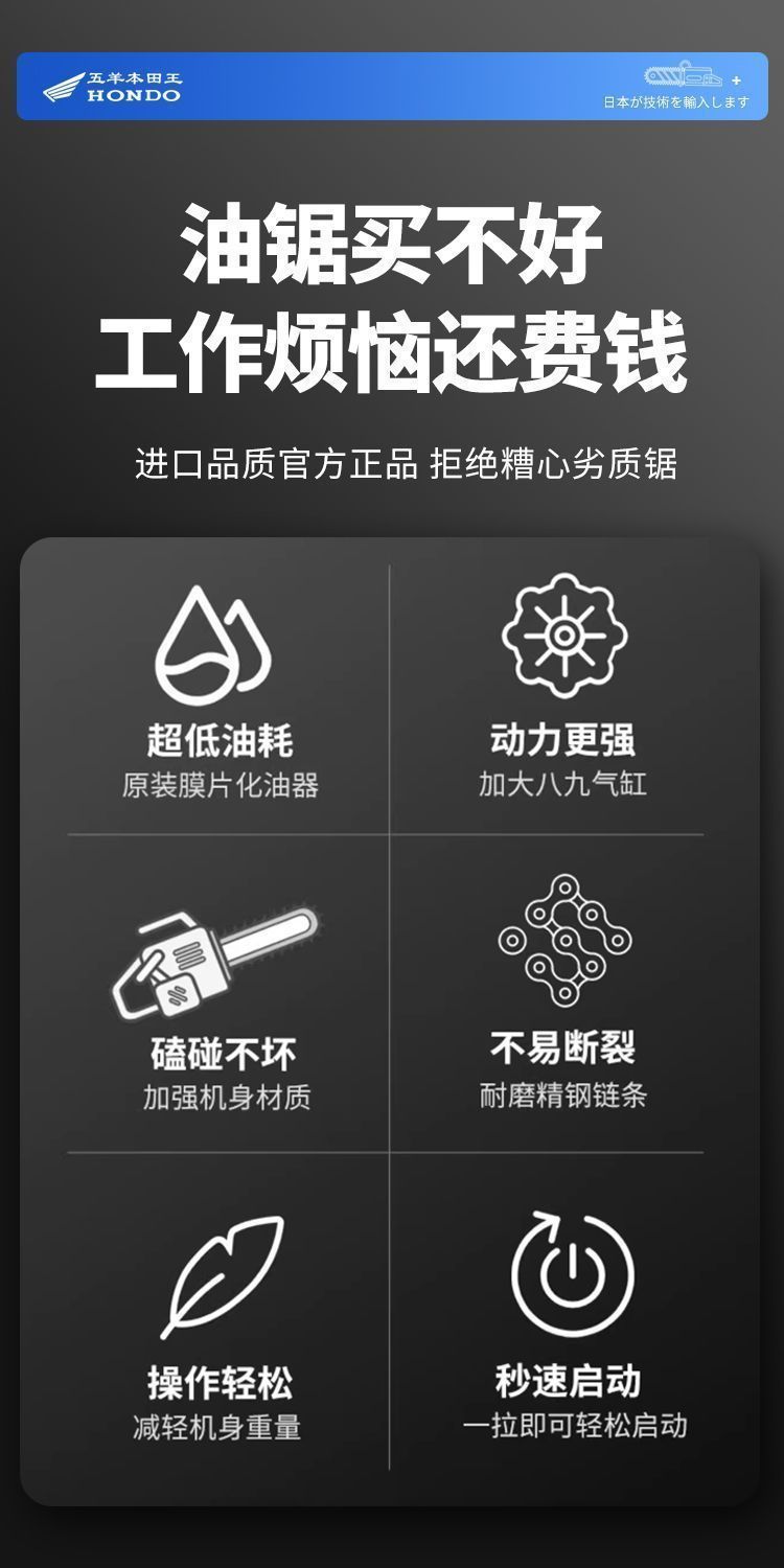 Honda는 원래 고출력 2 행정 체인을 수입하여 가솔린 엔진 벌목이 가정용 연료 절약 체인 트리 도마를 보았습니다.스토어 가기
