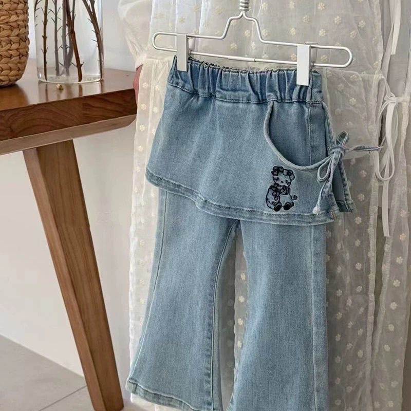 한국 스타일 아동복 소녀 봄 착용 바지 2025 새로운 스타일 유행 어린이 블루 아트 커튼 청바지 아기 소녀스토어 가기