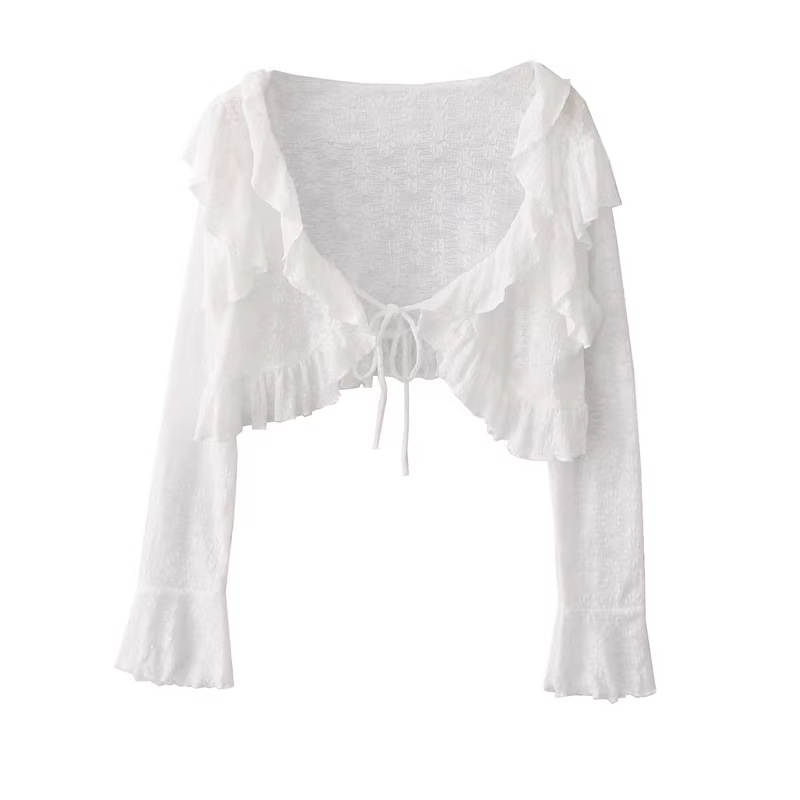 선스크린 카디건 얇은 외부 블라우스 여성용 레이스 뿔 소매 짧은 사이버 인기 작은 목도리 여름 스커트