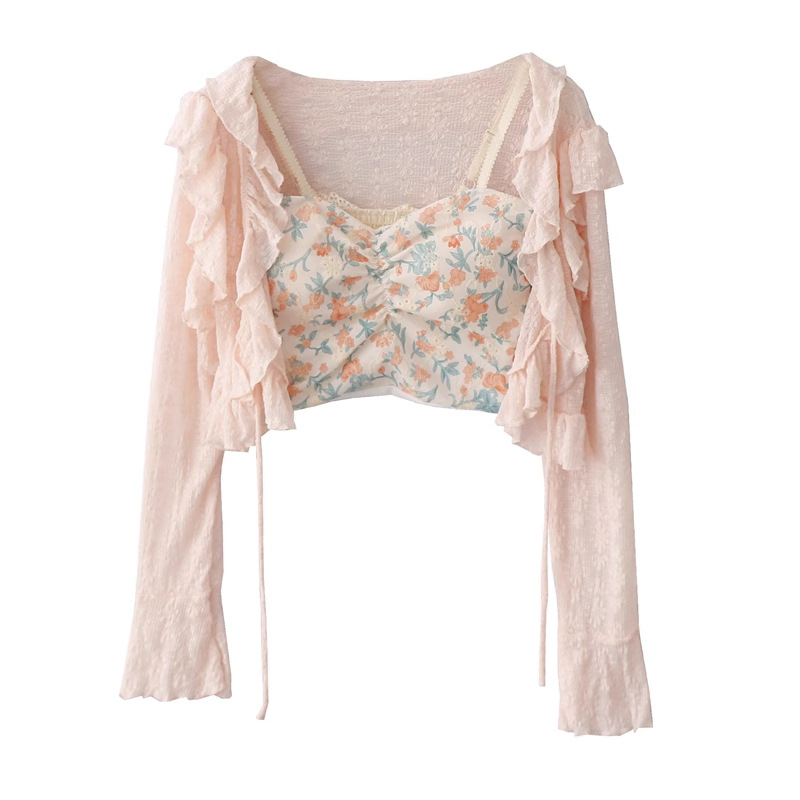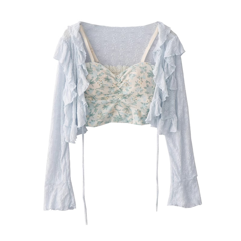 선스크린 카디건 얇은 외부 블라우스 여성용 레이스 뿔 소매 짧은 사이버 인기 작은 목도리 여름 스커트스토어 가기