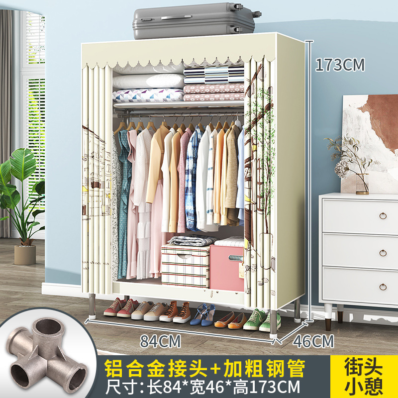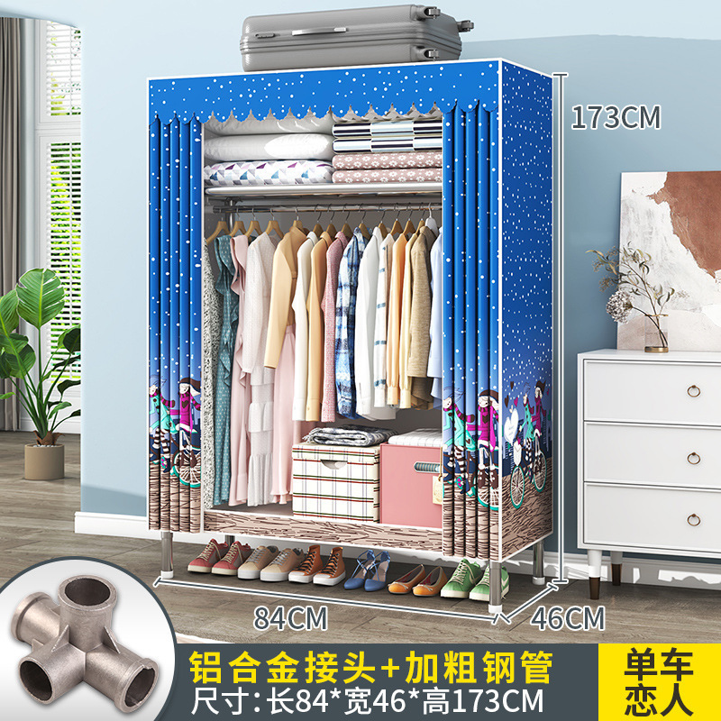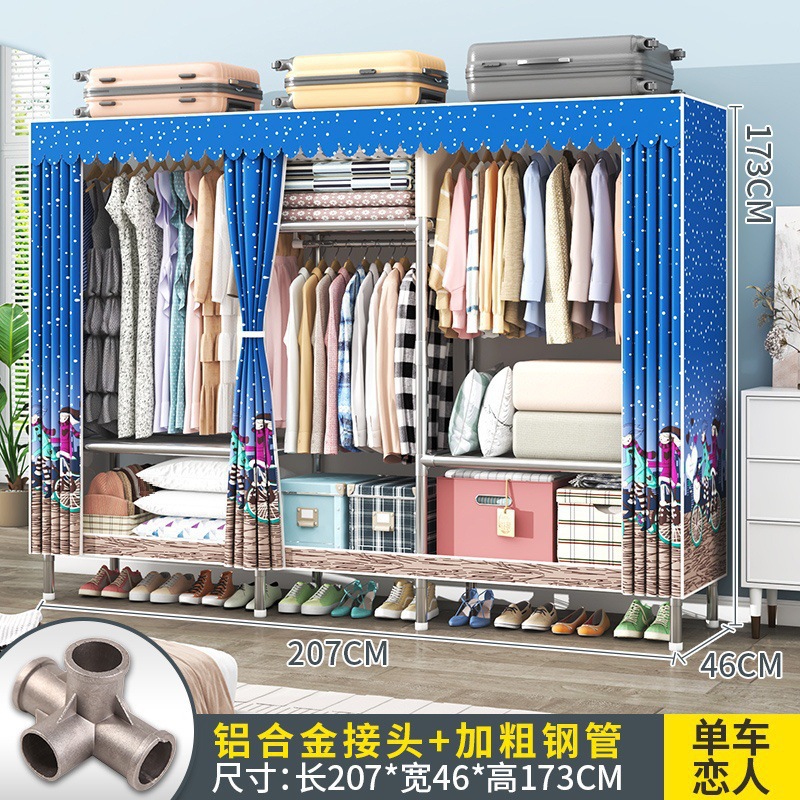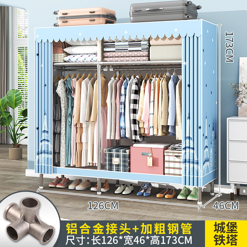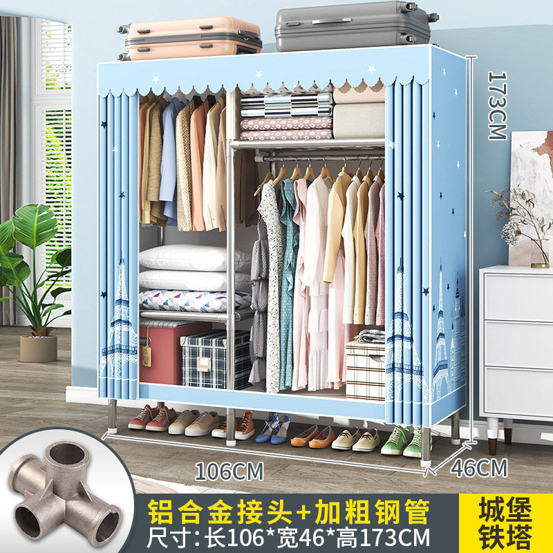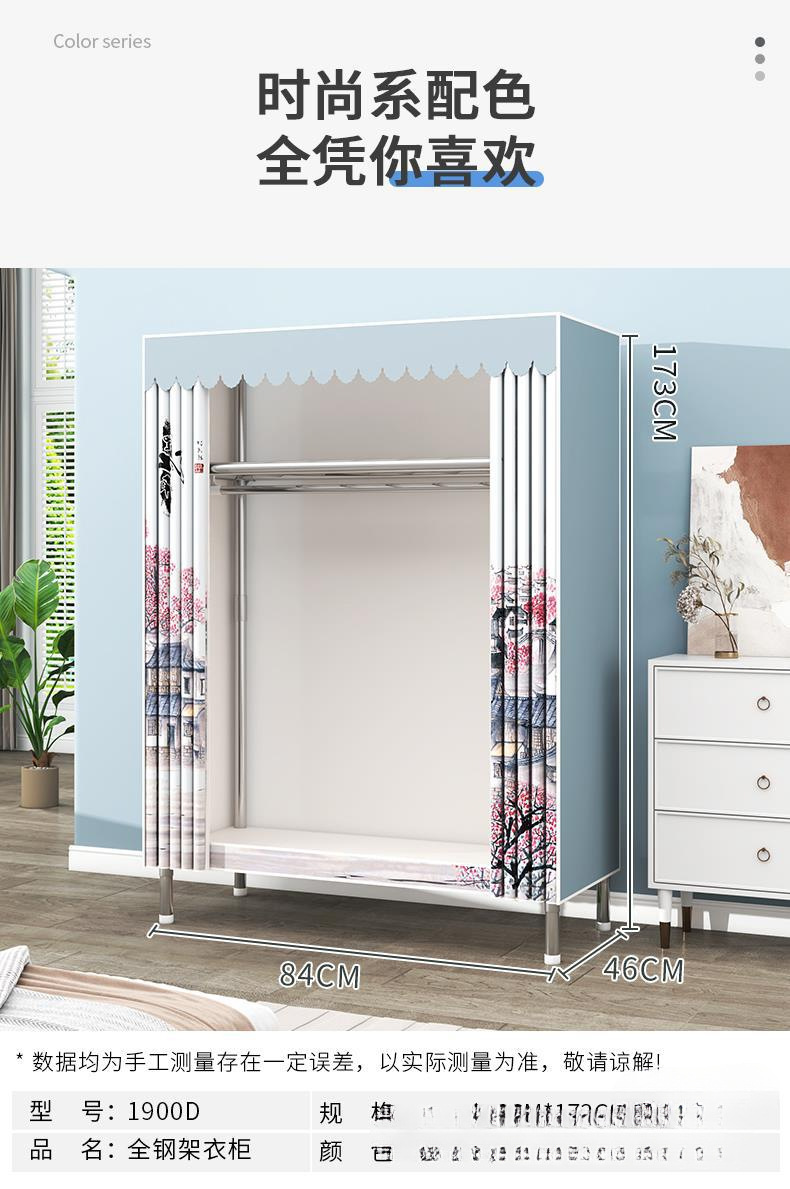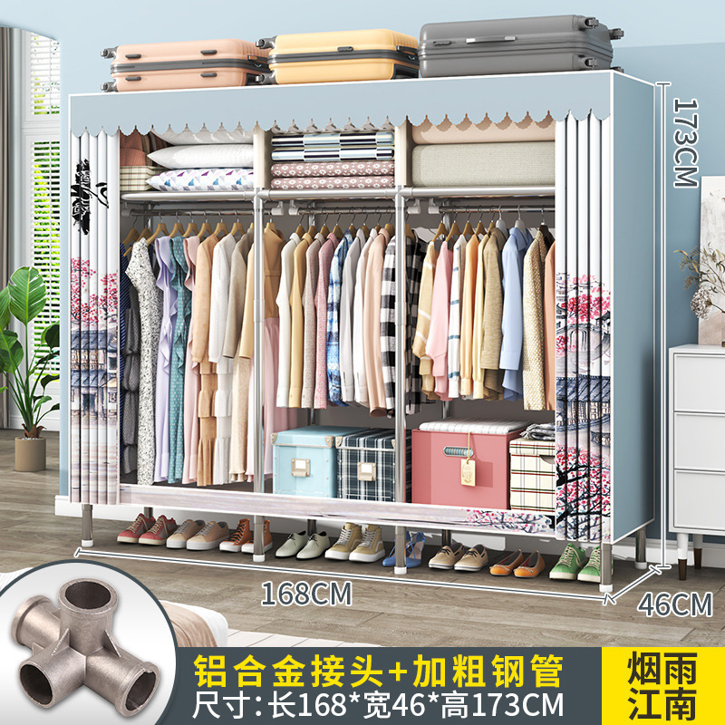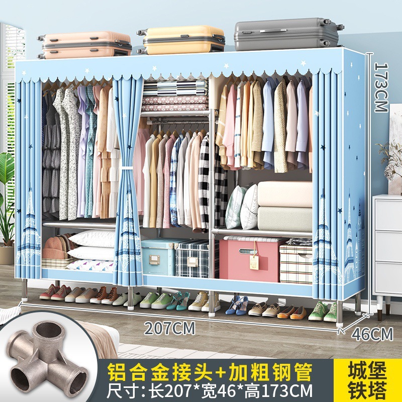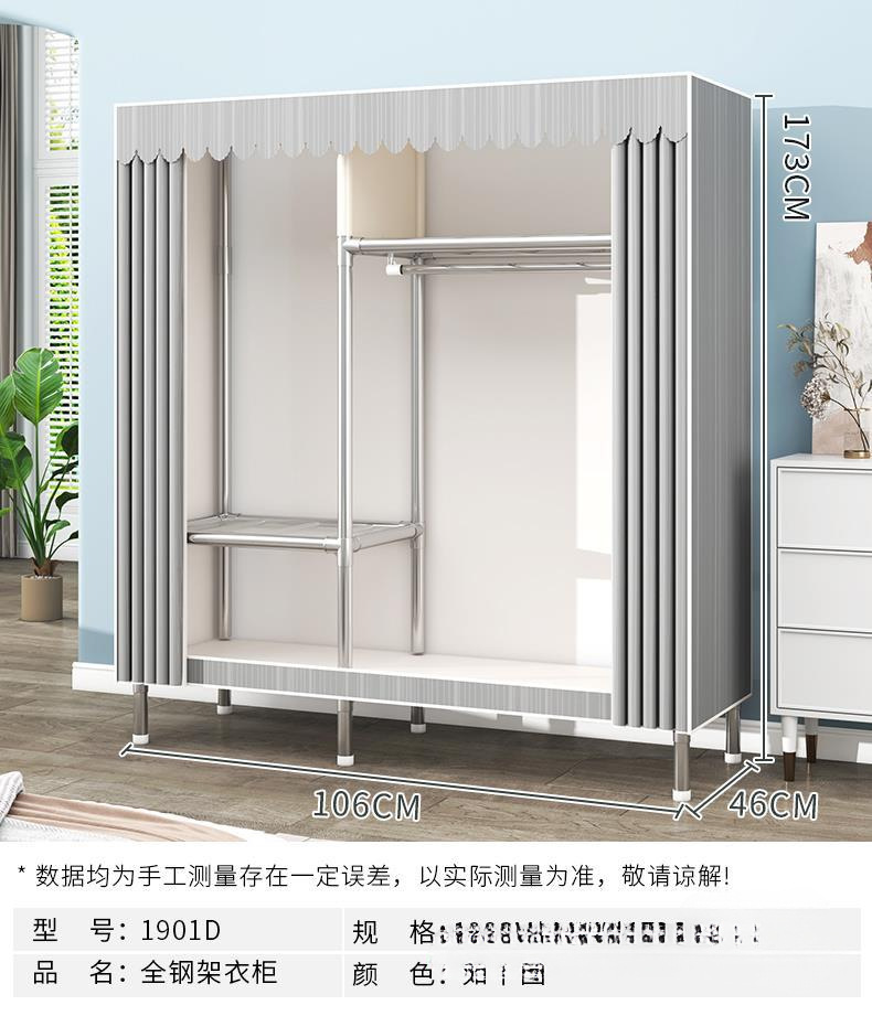 간단한 옷장 조립 강력하고 튼튼한 천 옷장 침실 바람 정신을위한 두꺼운 임대 방 및 대담한 풀 스틸 프레임 캐비닛스토어 가기