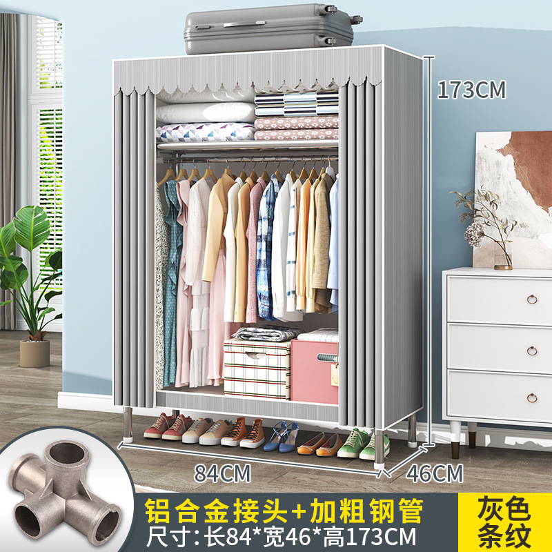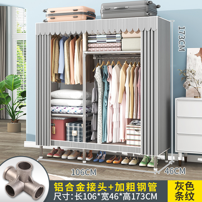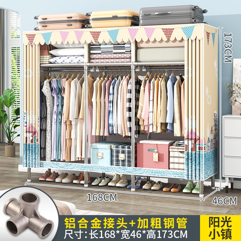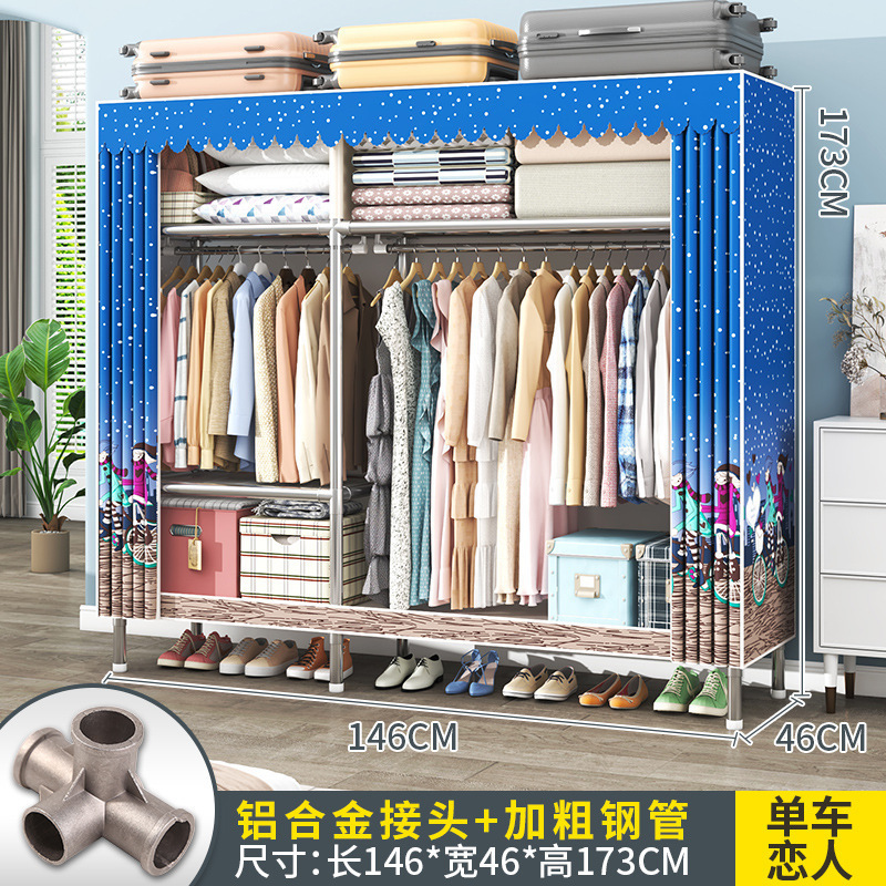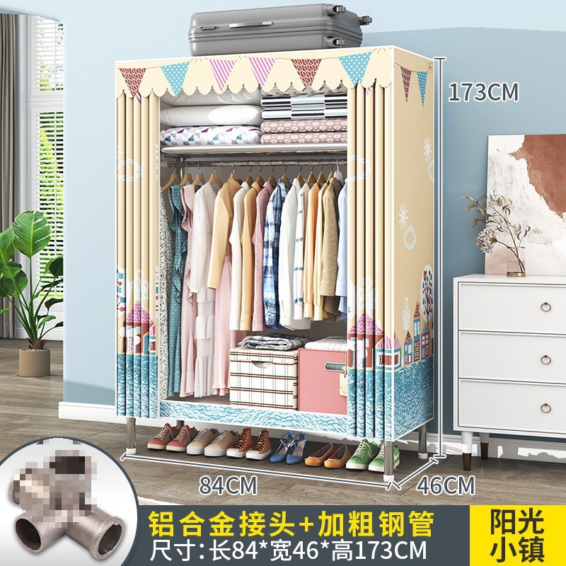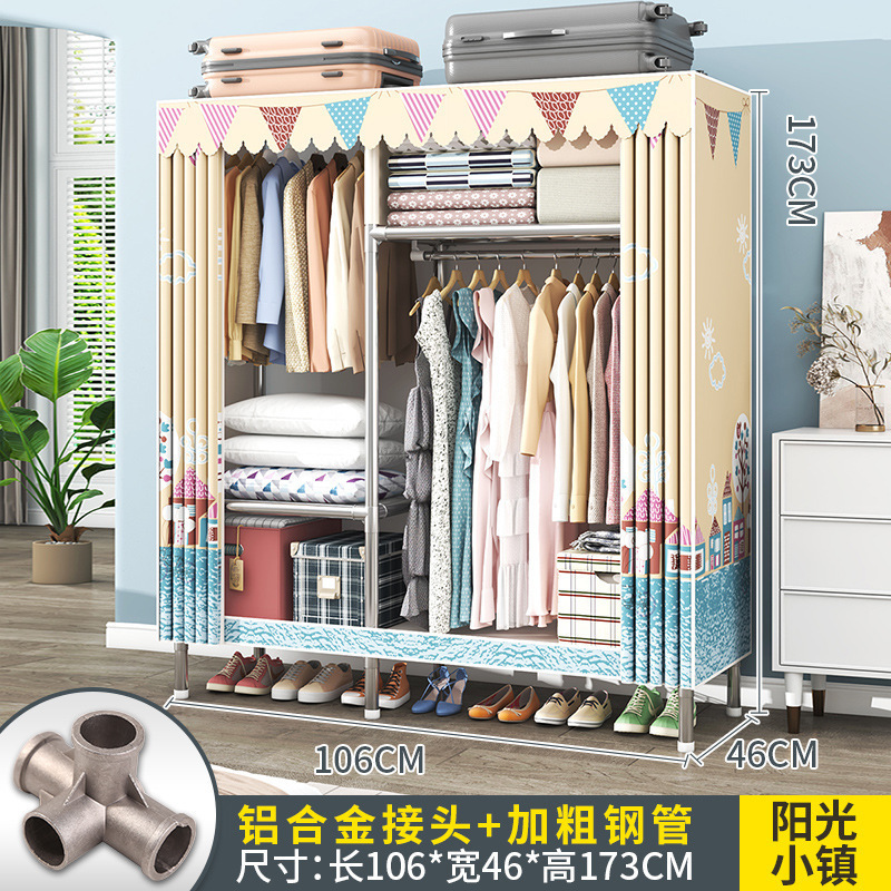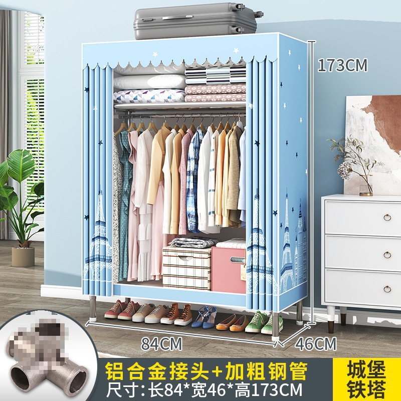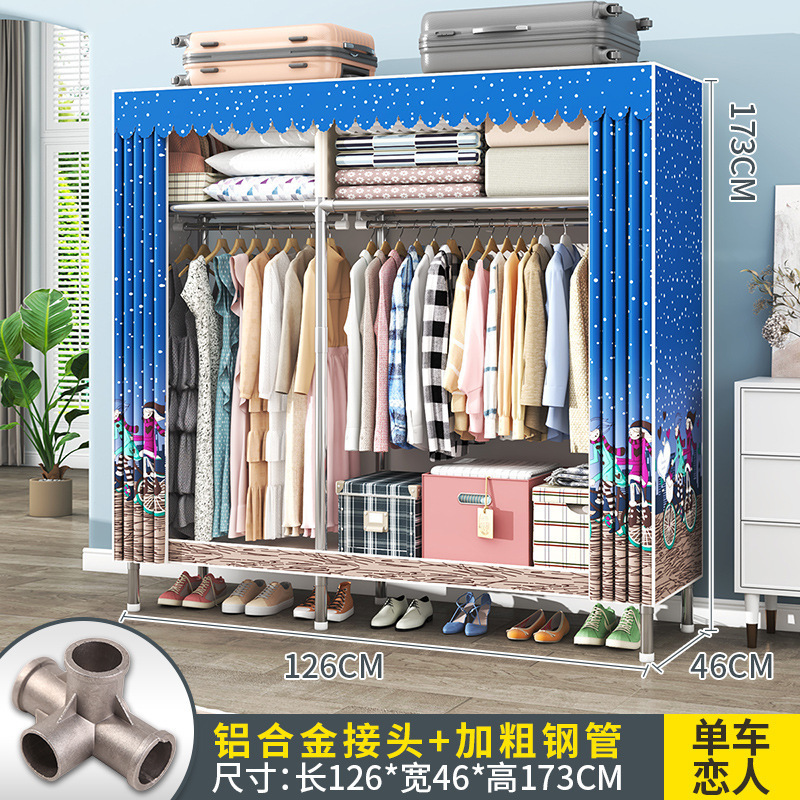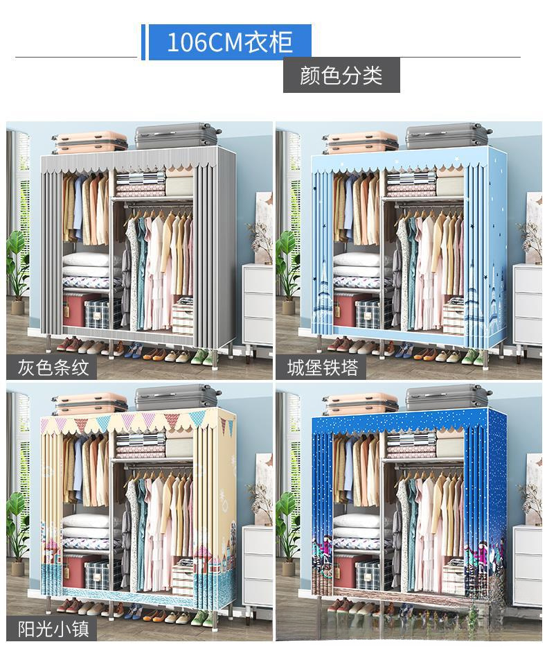 간단한 옷장 조립 강력하고 튼튼한 천 옷장 침실 바람 정신을위한 두꺼운 임대 방 및 대담한 풀 스틸 프레임 캐비닛스토어 가기
