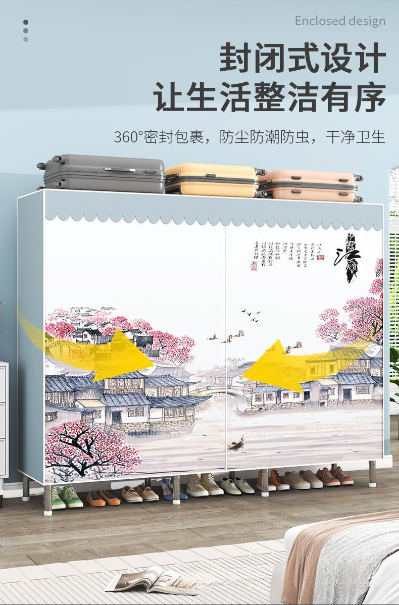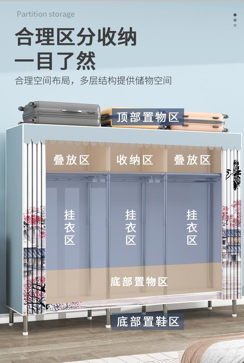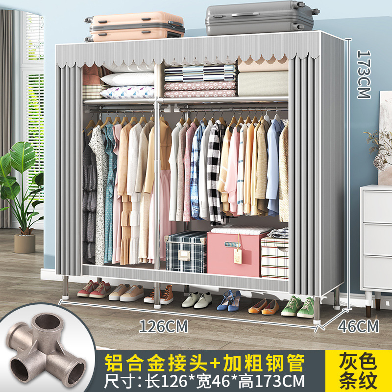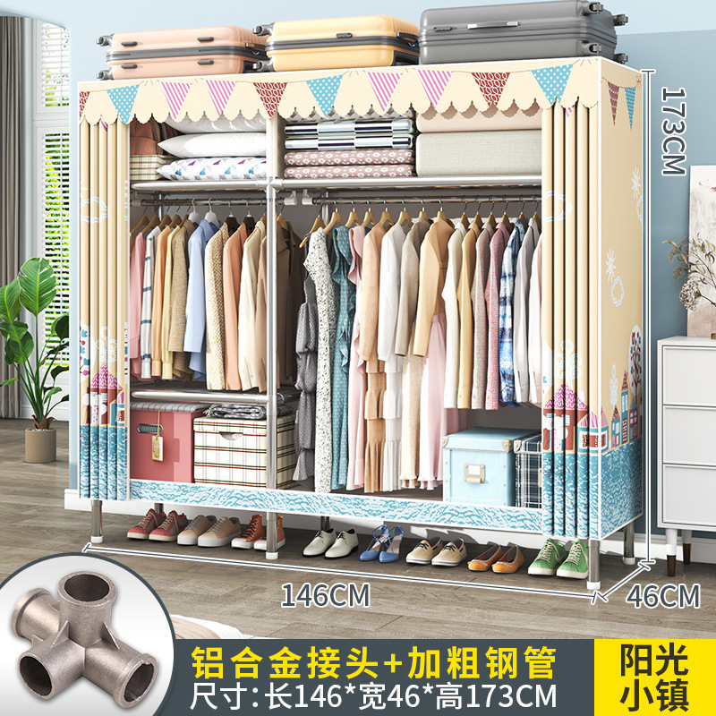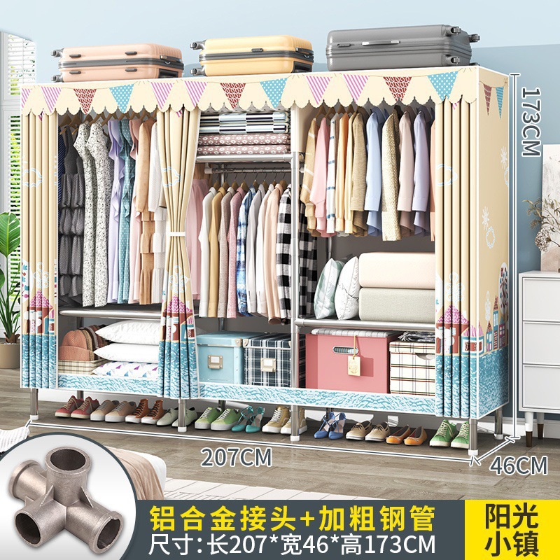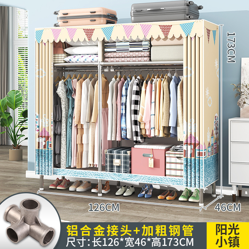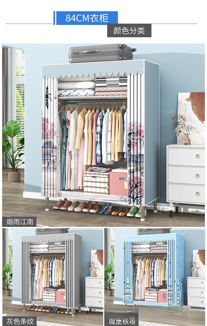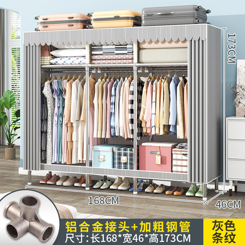 간단한 옷장 조립 강력하고 튼튼한 천 옷장 침실 바람 정신을위한 두꺼운 임대 방 및 대담한 풀 스틸 프레임 캐비닛스토어 가기