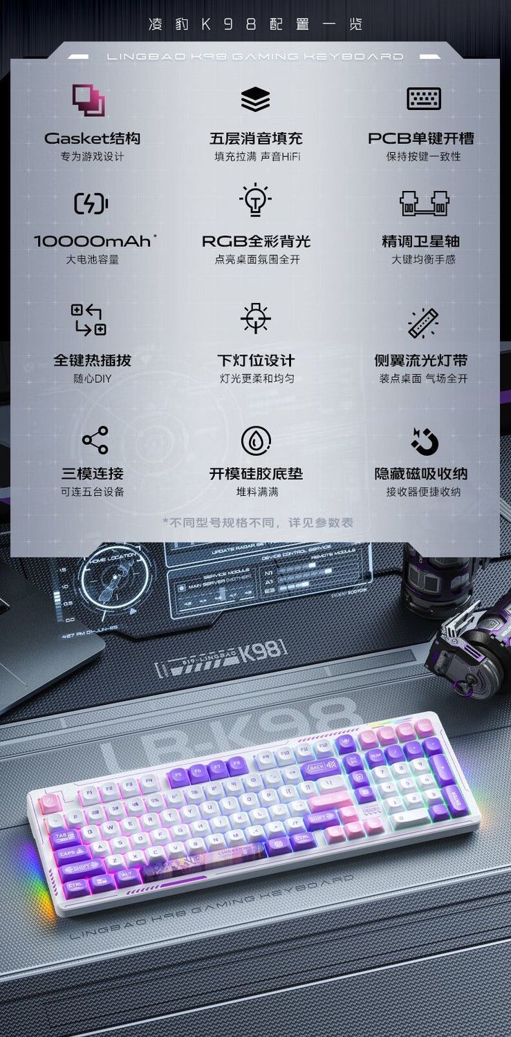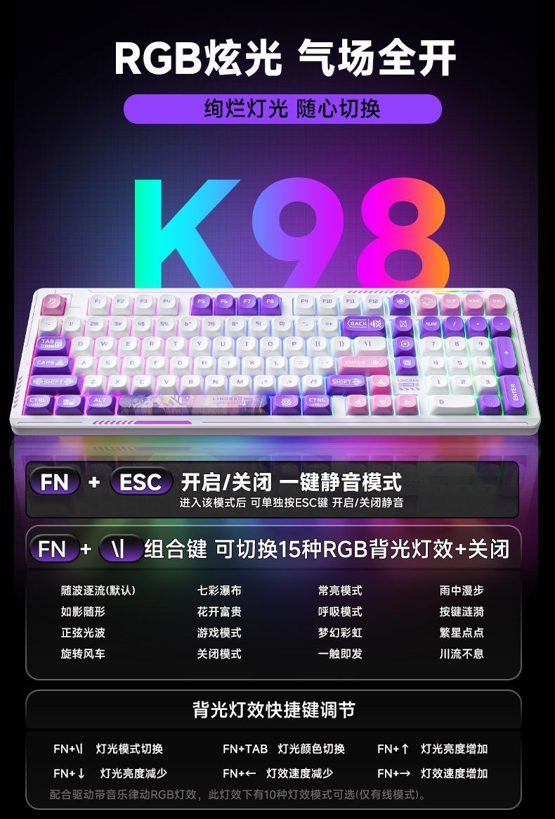 Lingbao K98 맞춤형 무선 기계 키보드 3 모드 연결 전체 키 핫 플러그 게임 e 스포츠 유선 키보드스토어 가기