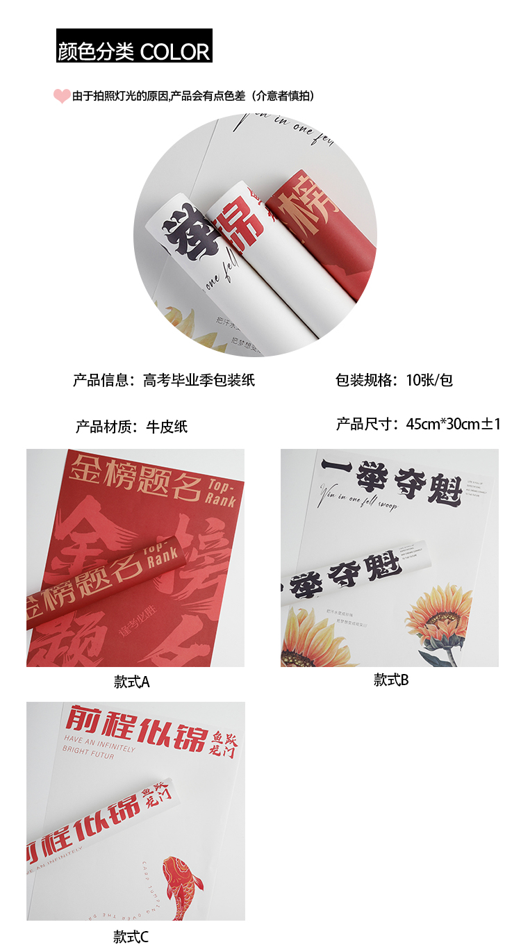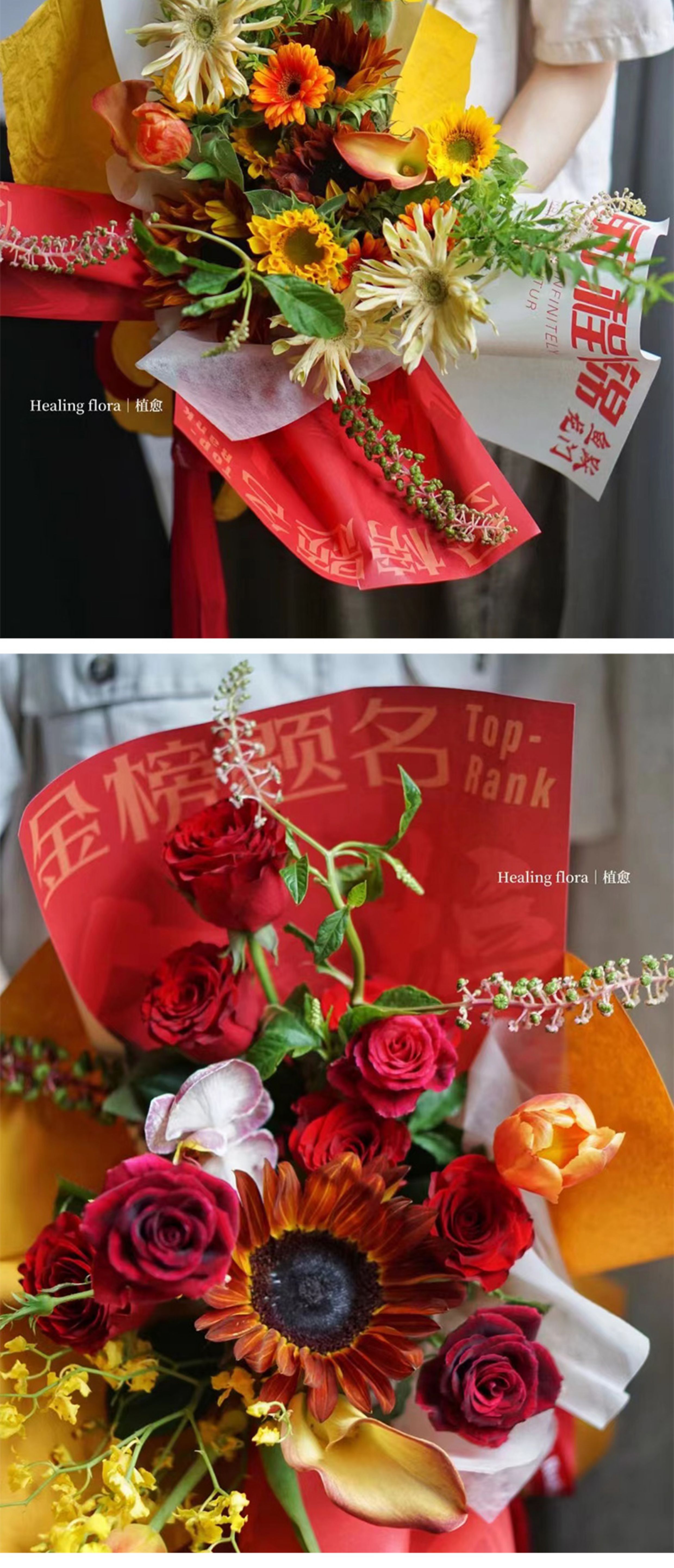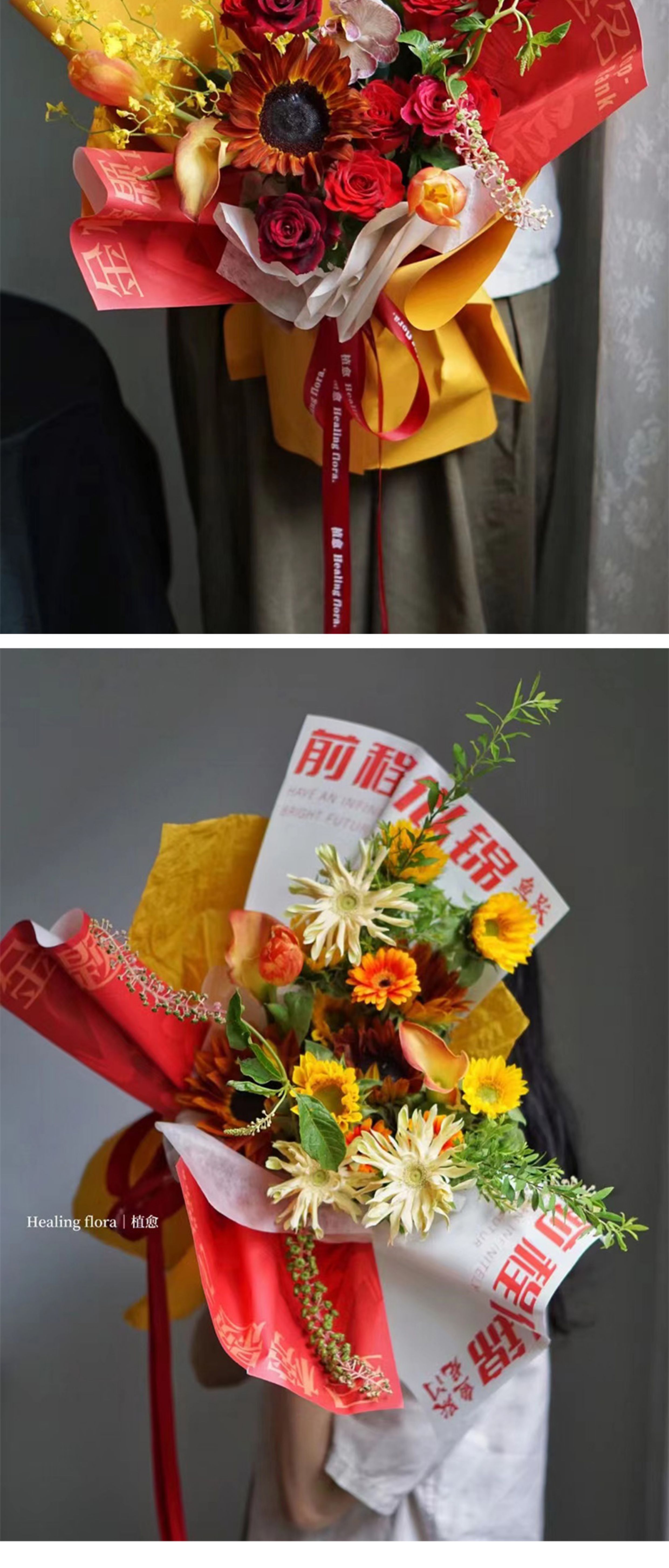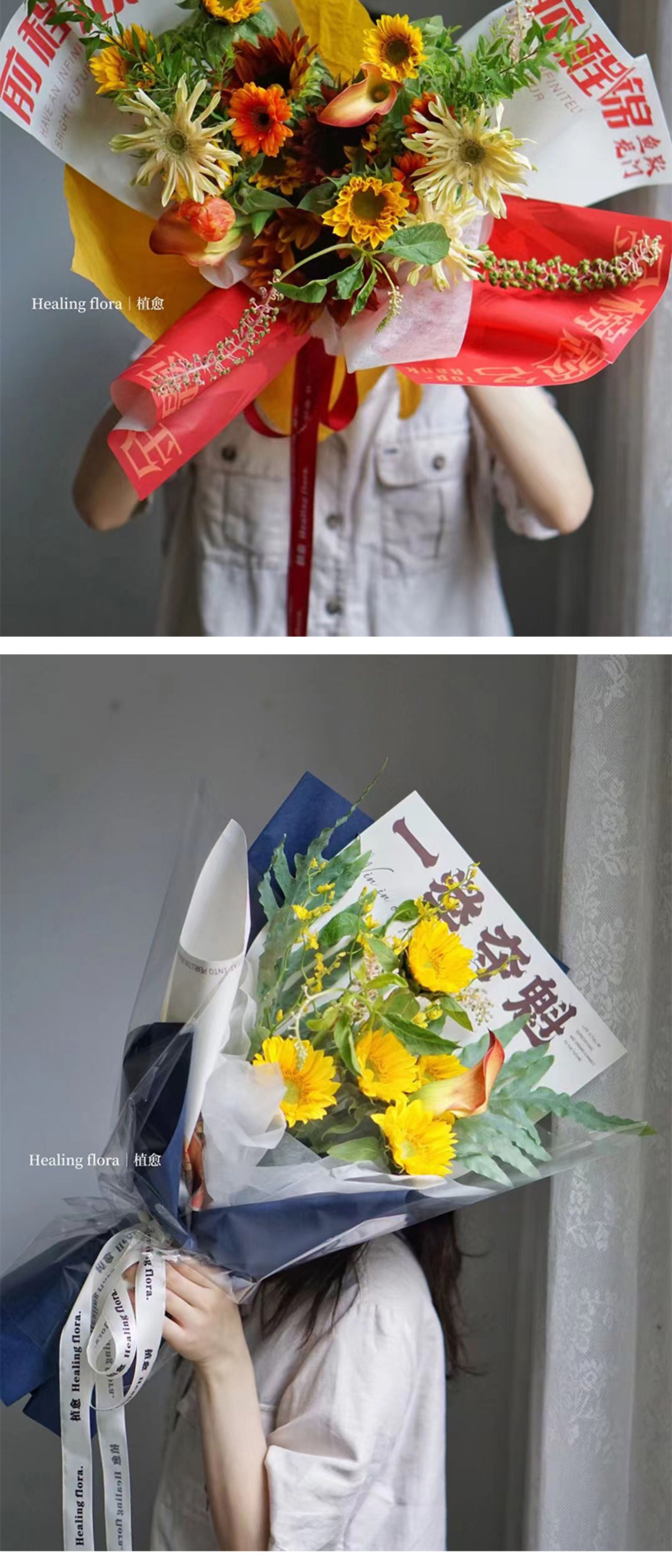 대학 입학 시험 졸업 시즌 포장 종이 인터넷 축하 간단한 종이 꽃 선물 가방 꽃 종이 날개 해바라기 꽃 종이