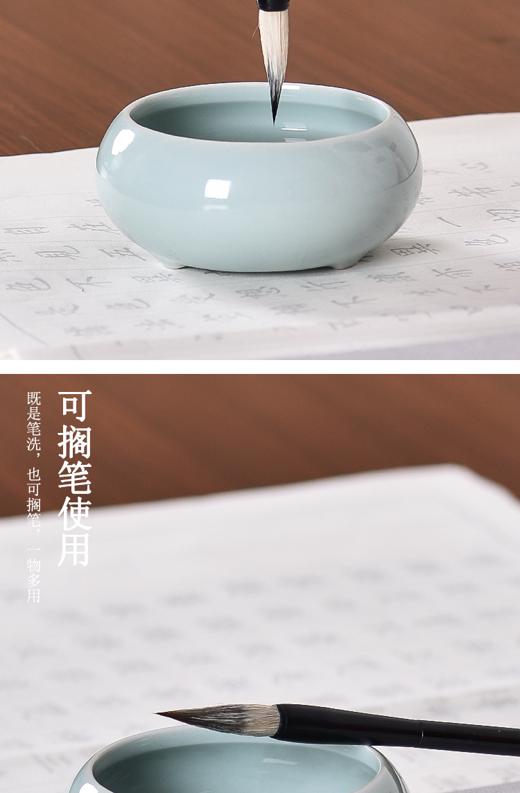 연구의 네 가지 보물 골동품 세라믹 서예 중국 회화 브러시 세 다리 연필 세척 통 학생들은 물 냄비 세척 스몰 사이즈 차를 씻는다