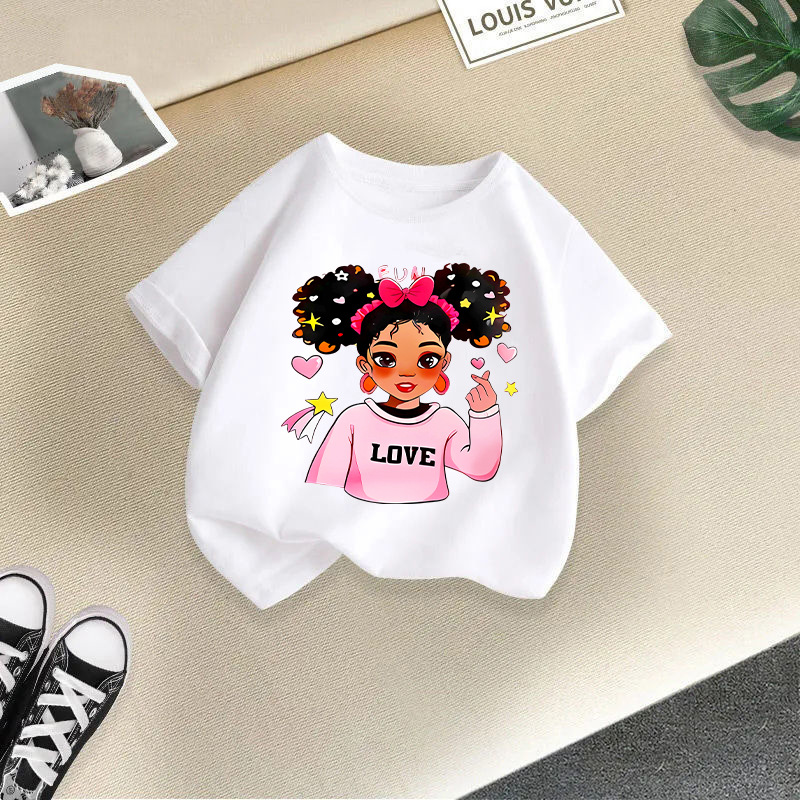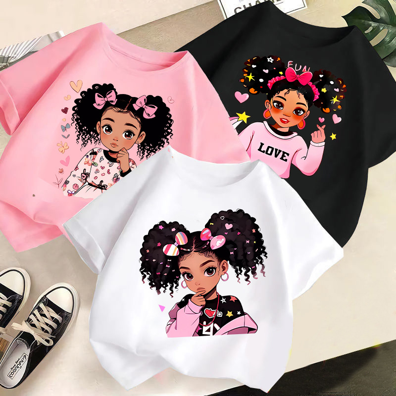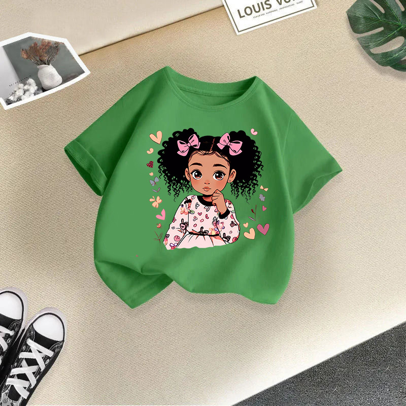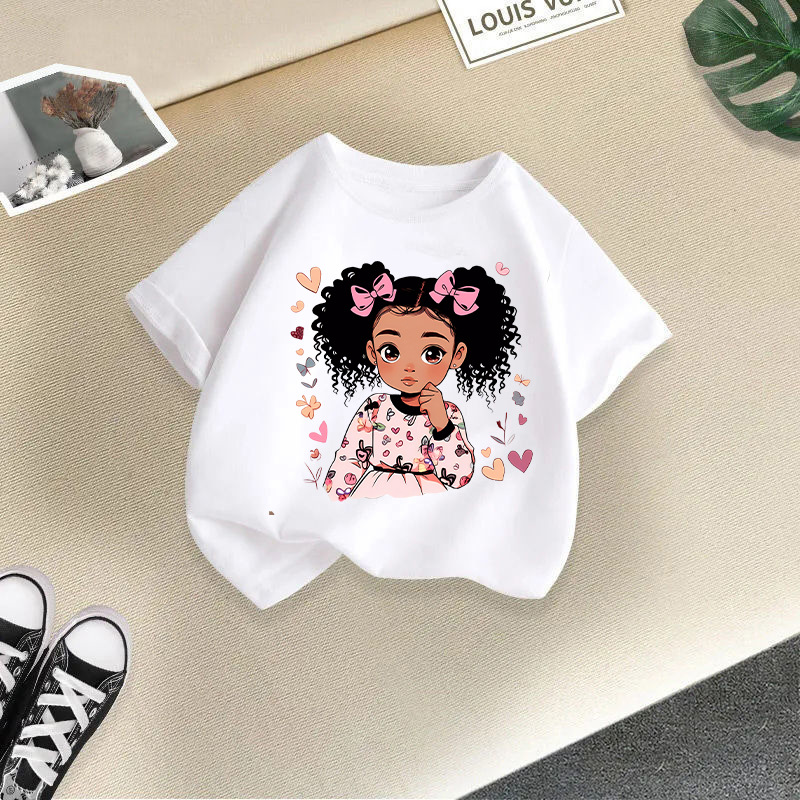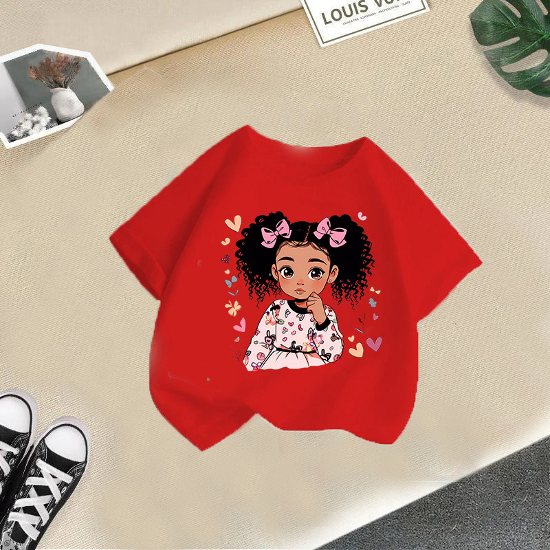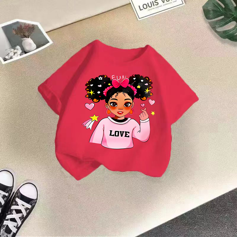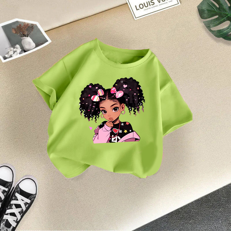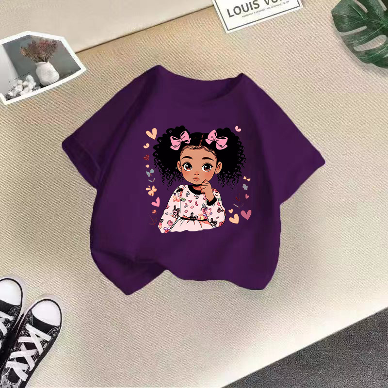 국경 간 대외 무역 소녀 캐주얼 라운드 넥 반팔 티셔츠 만화 인쇄 아동복 여름 새로운 어린이 탑 소녀