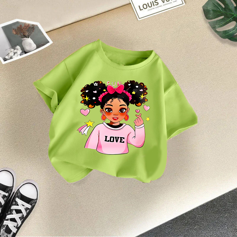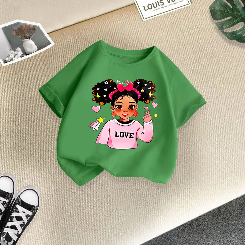 국경 간 대외 무역 소녀 캐주얼 라운드 넥 반팔 티셔츠 만화 인쇄 아동복 여름 새로운 어린이 탑 소녀스토어 가기