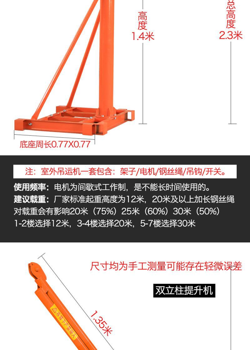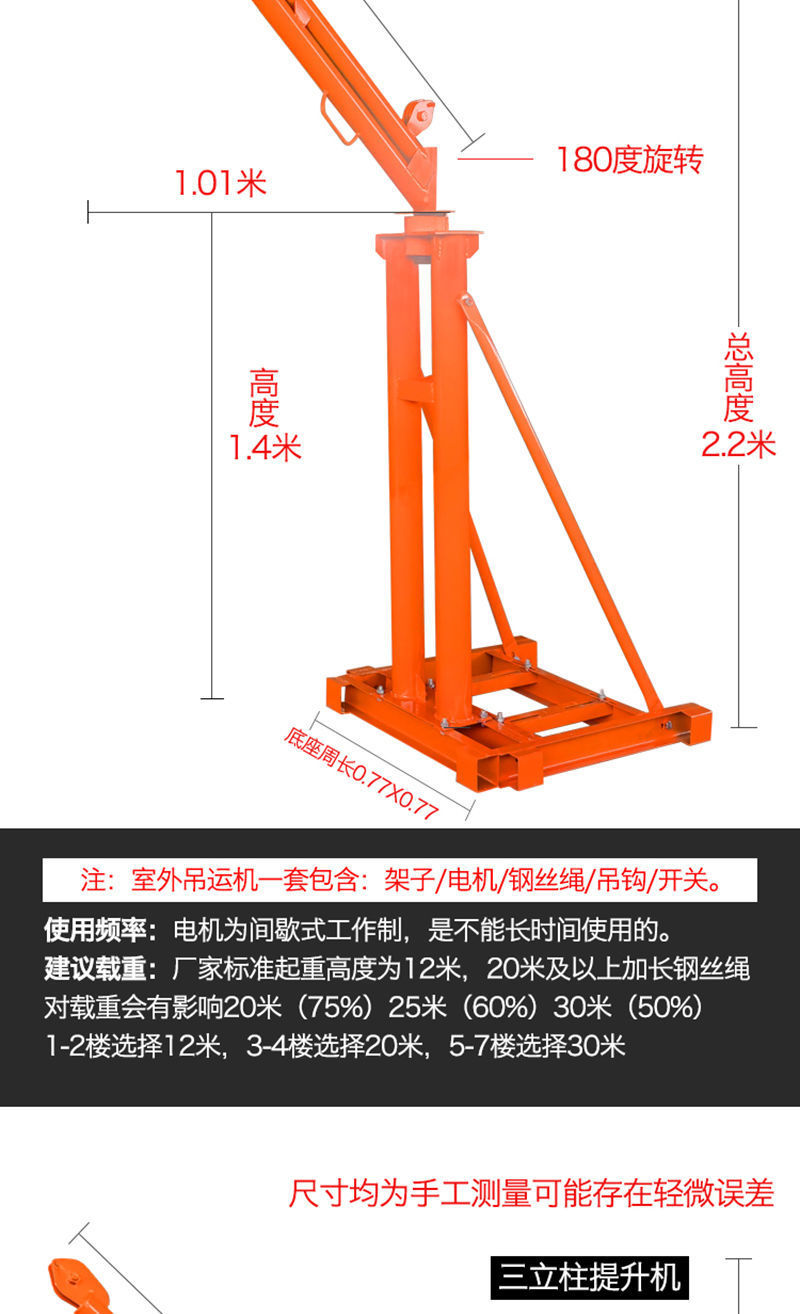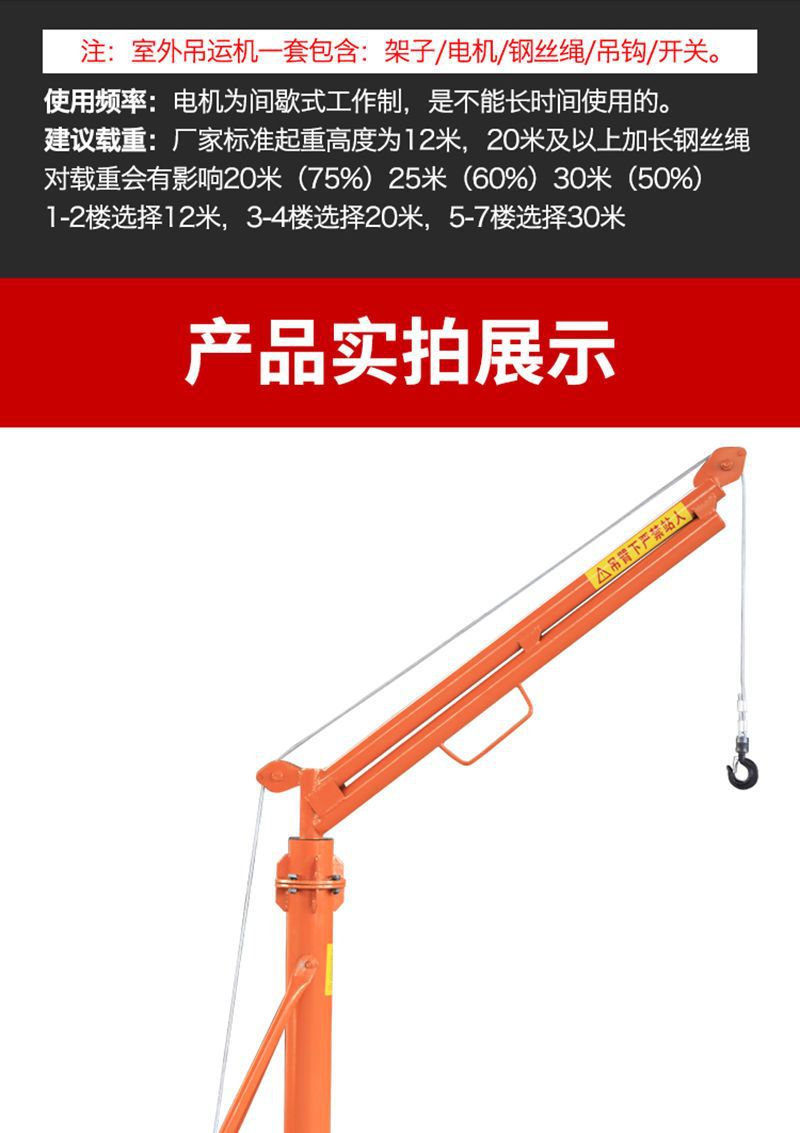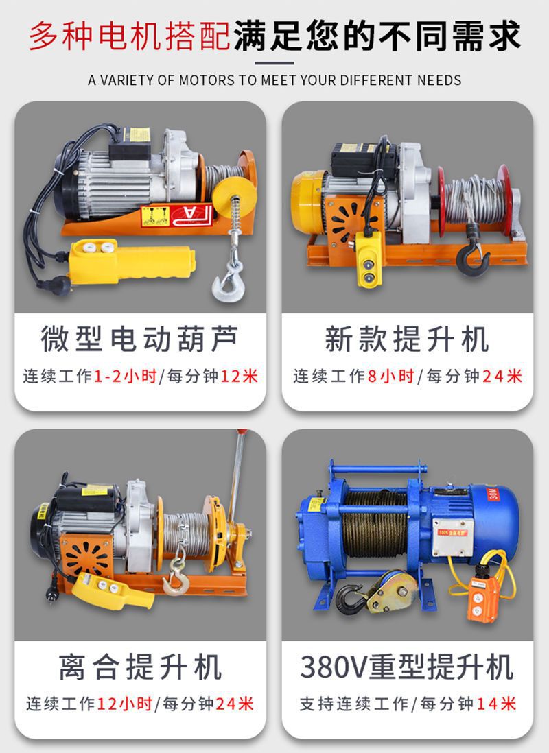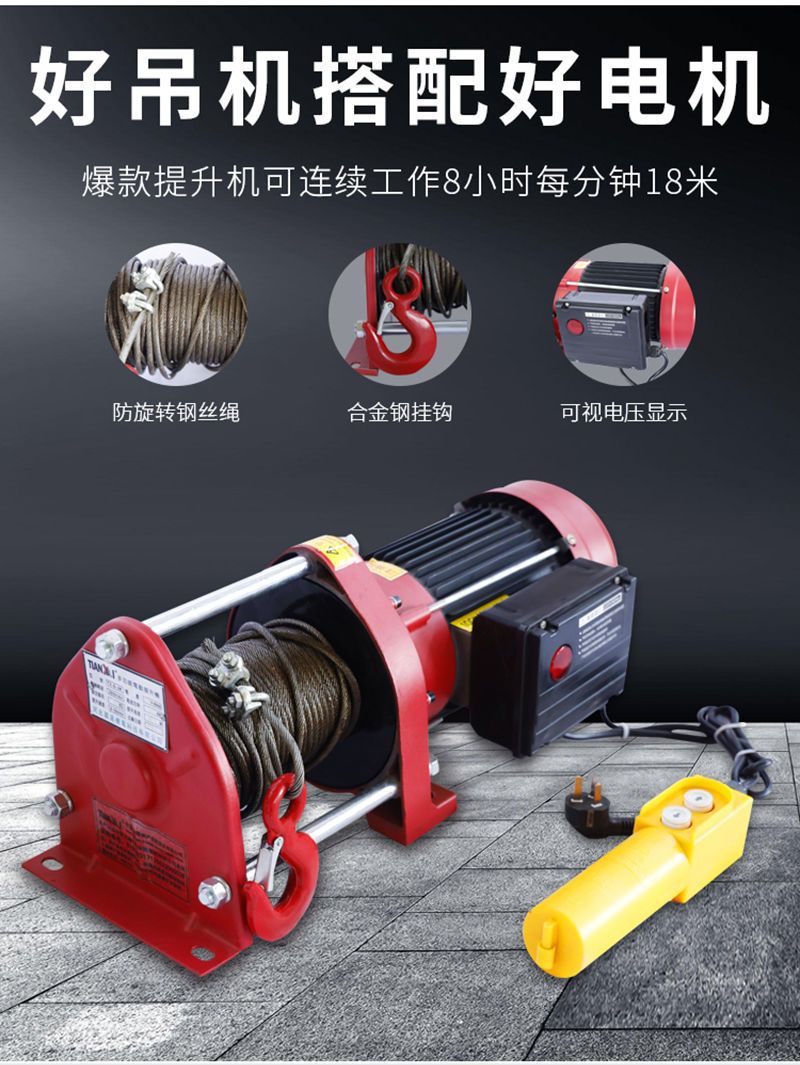 가정용 크레인 호이스트 전기 호이스트 220V 교수형 재료 매달려 벽돌 야외 건물 장식 작은 크레인