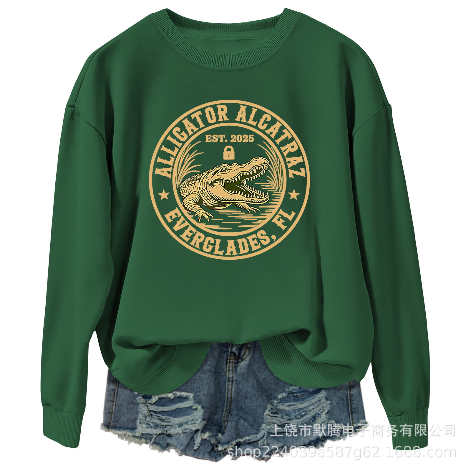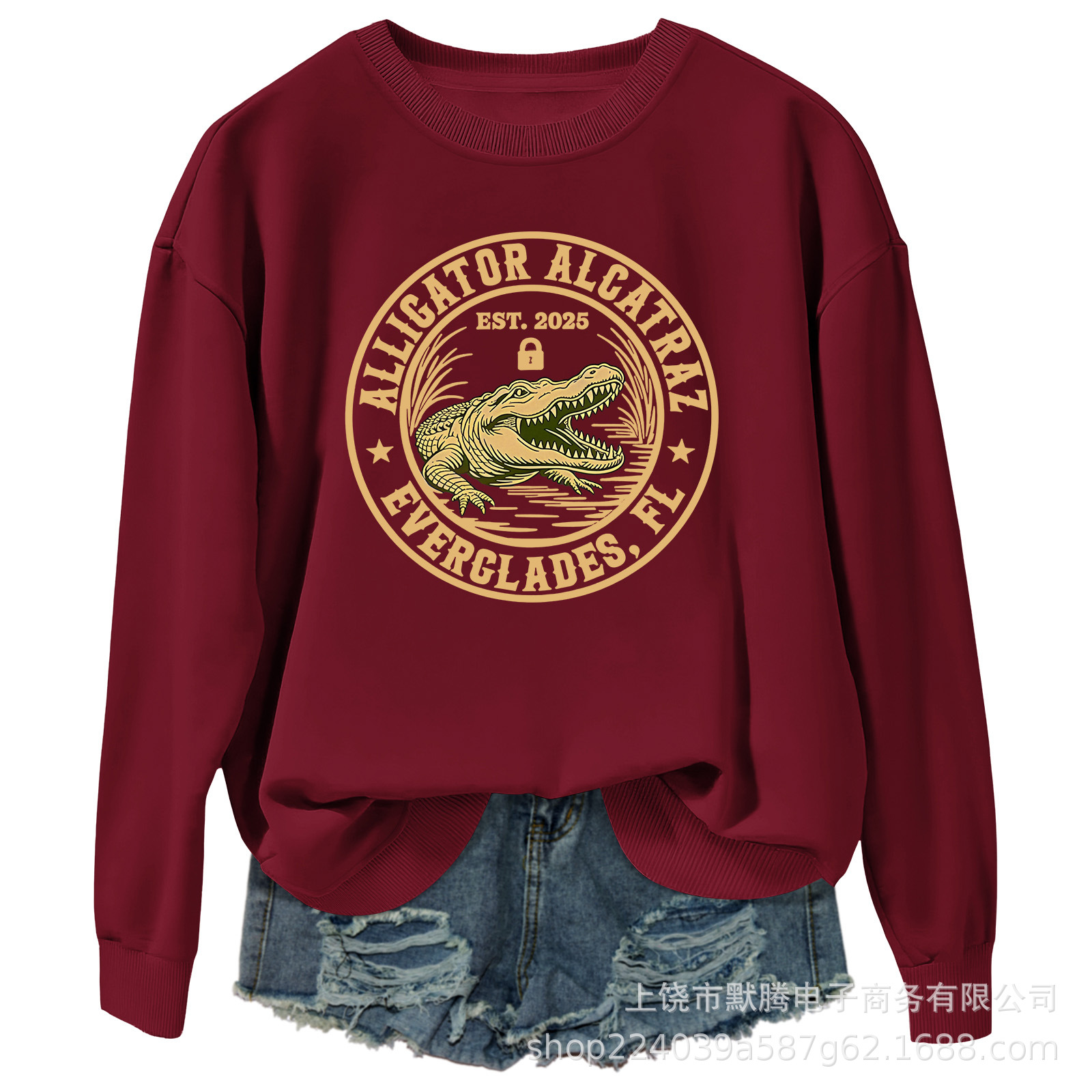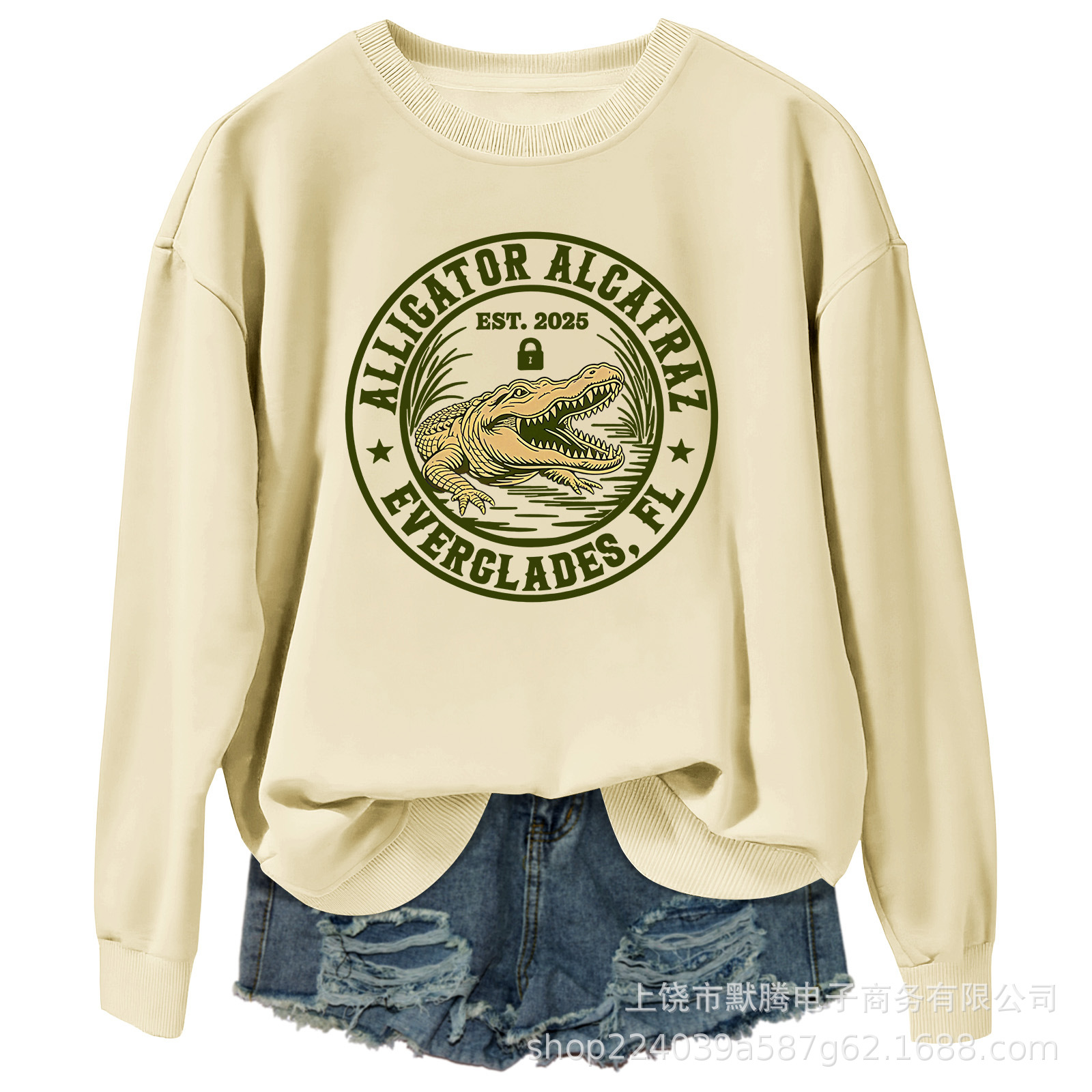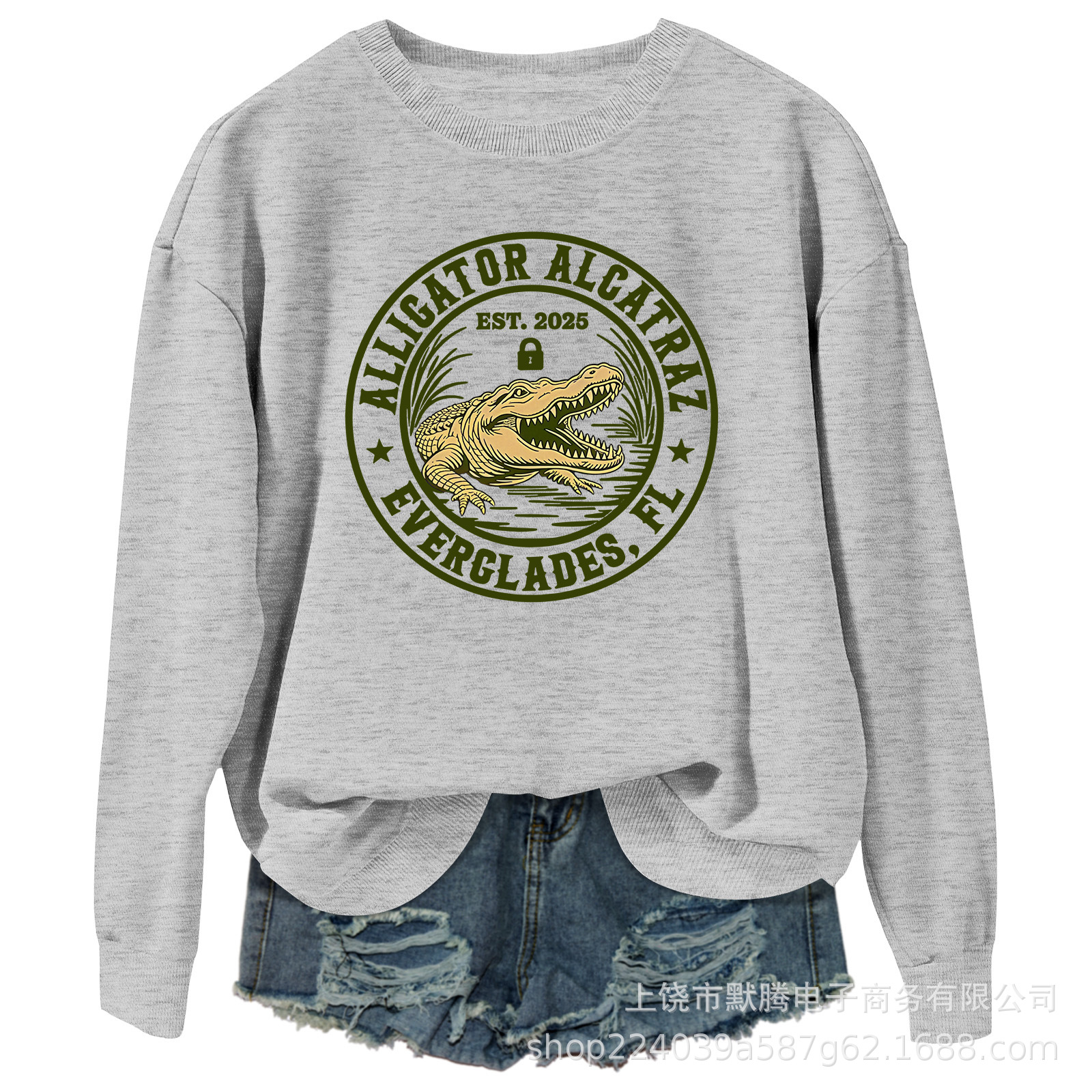 2025 새로운 국경 아마존 유럽과 미국 느슨한 캐주얼 패션 라운드 넥 인쇄 긴 소매 탑
