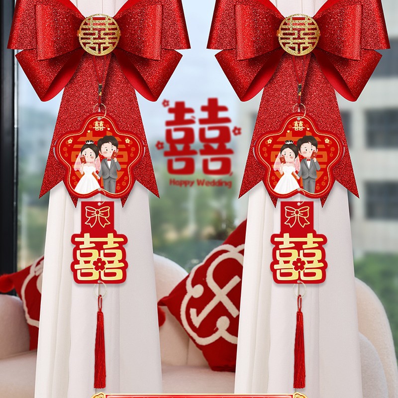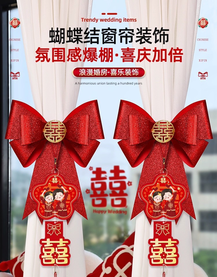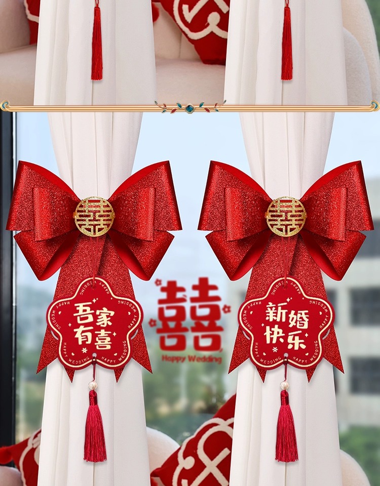 웨딩 커튼 장식 웨딩 룸 레이아웃 나비 넥타이 그물 빨간 남자의 새 집 여자의 결혼식 용품
