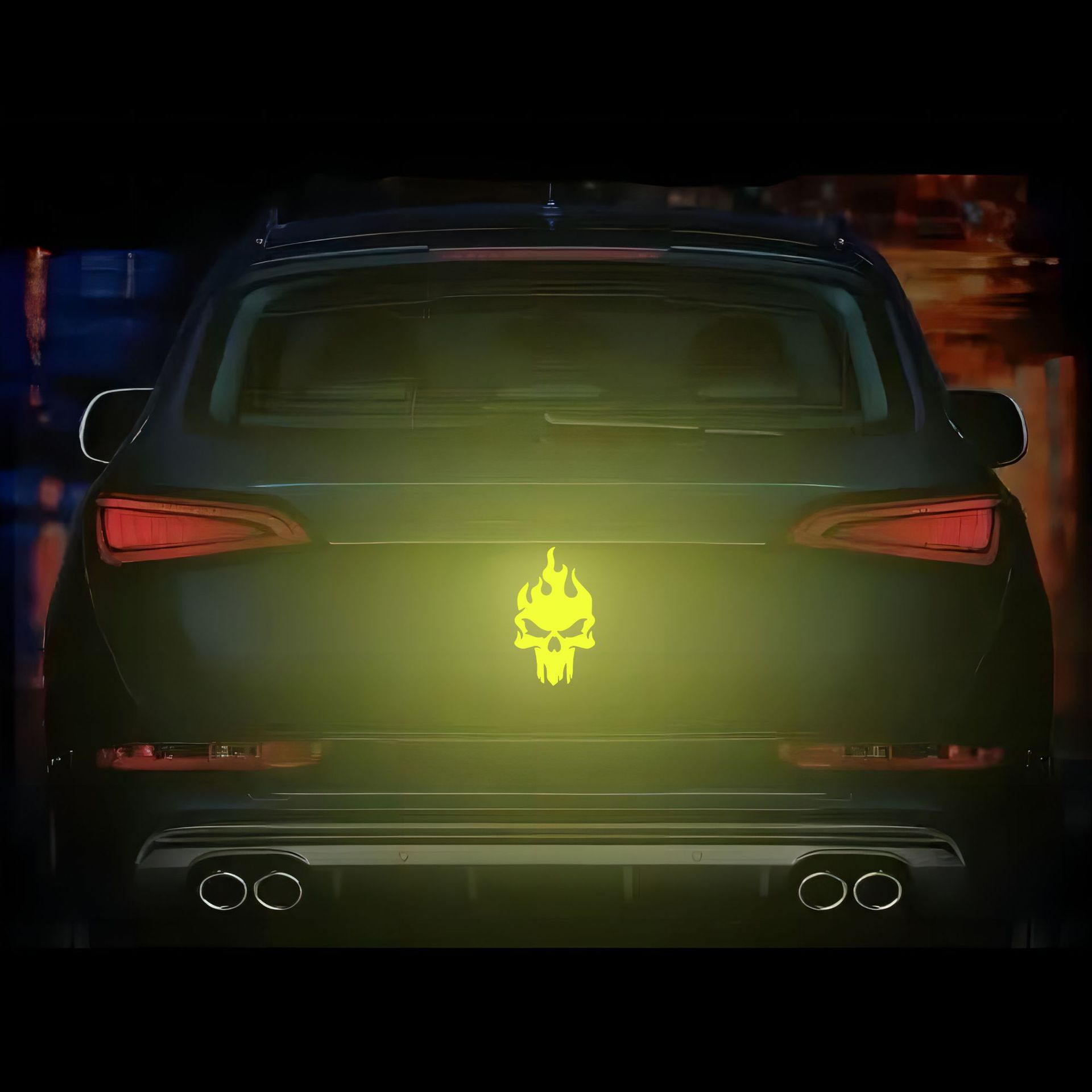 차가운 화염 두개골 머리 후방 슈퍼 반사 경고 스티커 야간 운전 안전 경고 스티커 음영 스크래치 스티커스토어 가기