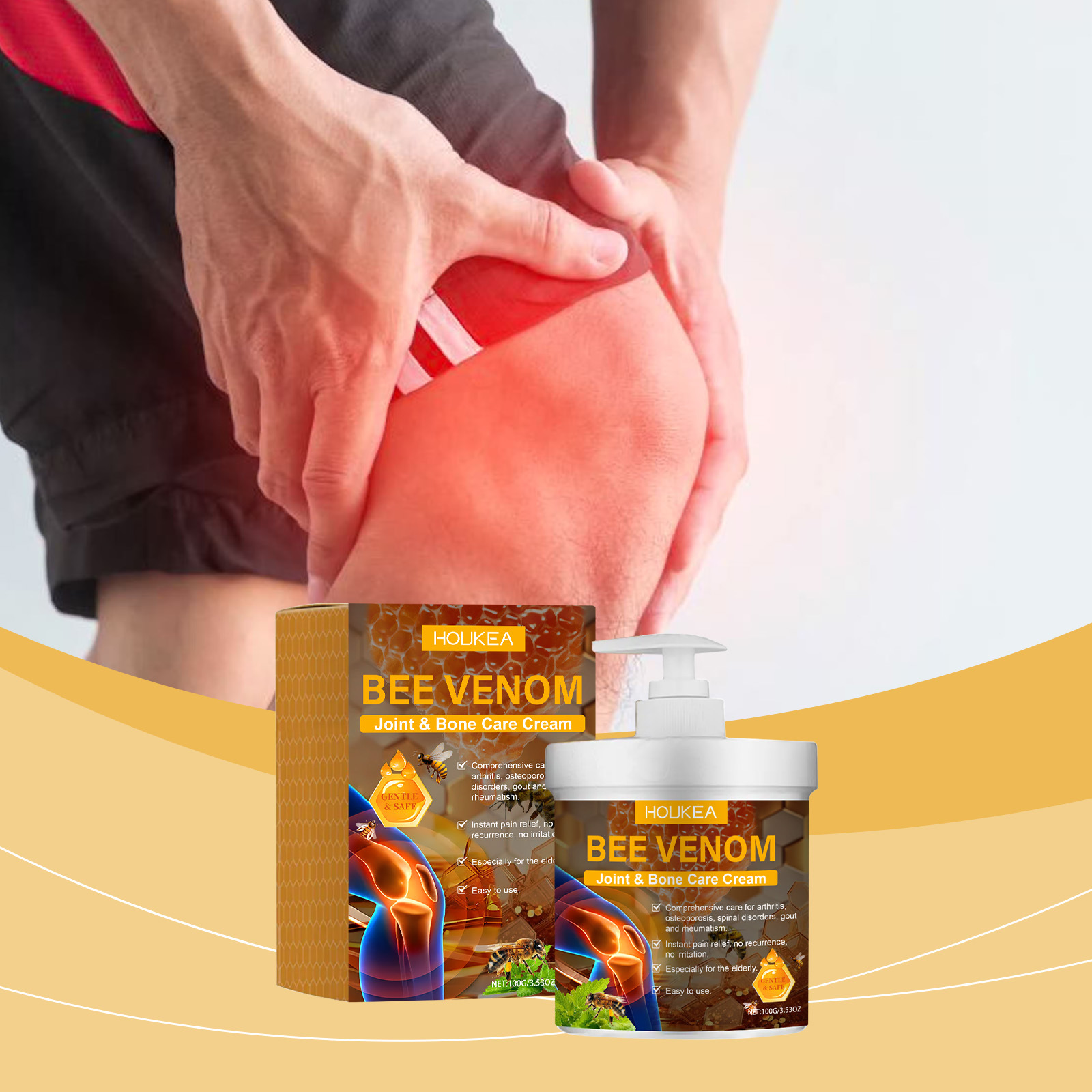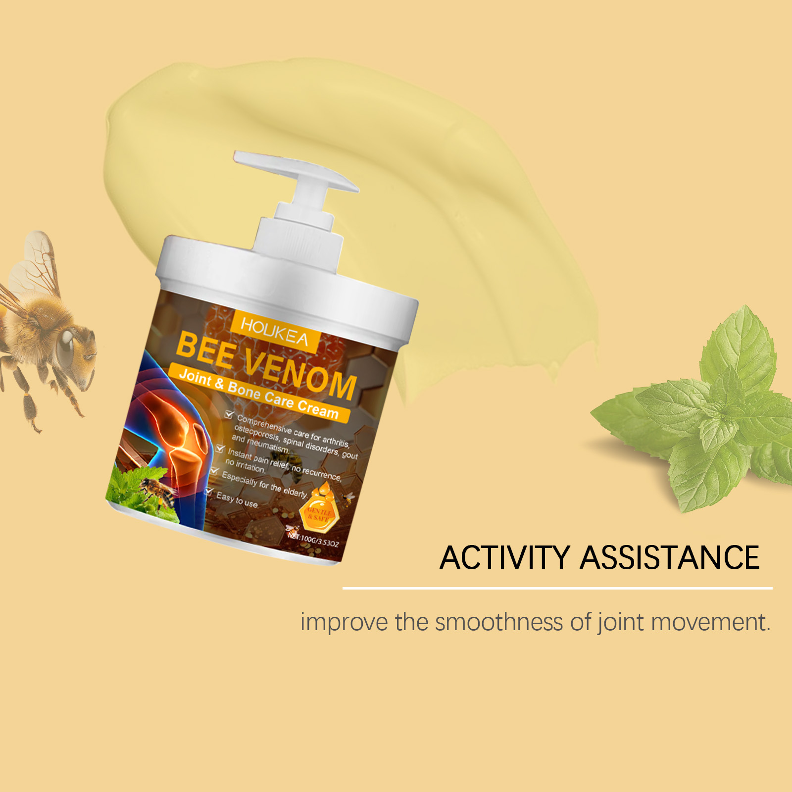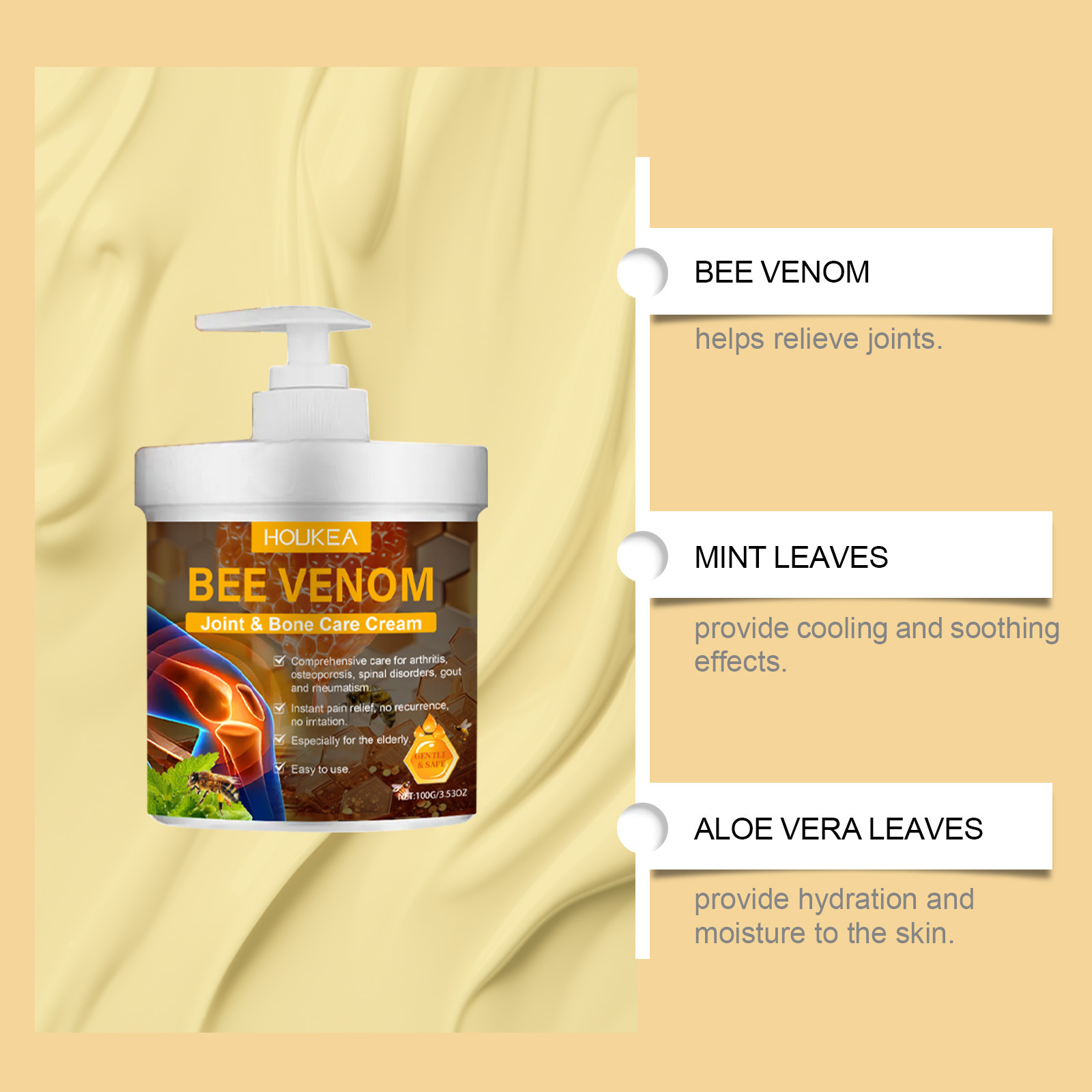 HOUKEA Bee Venom Joint Care 크림 부드러운 진정 손과 발 공동 매일 바디 케어 마사지 크림스토어 가기