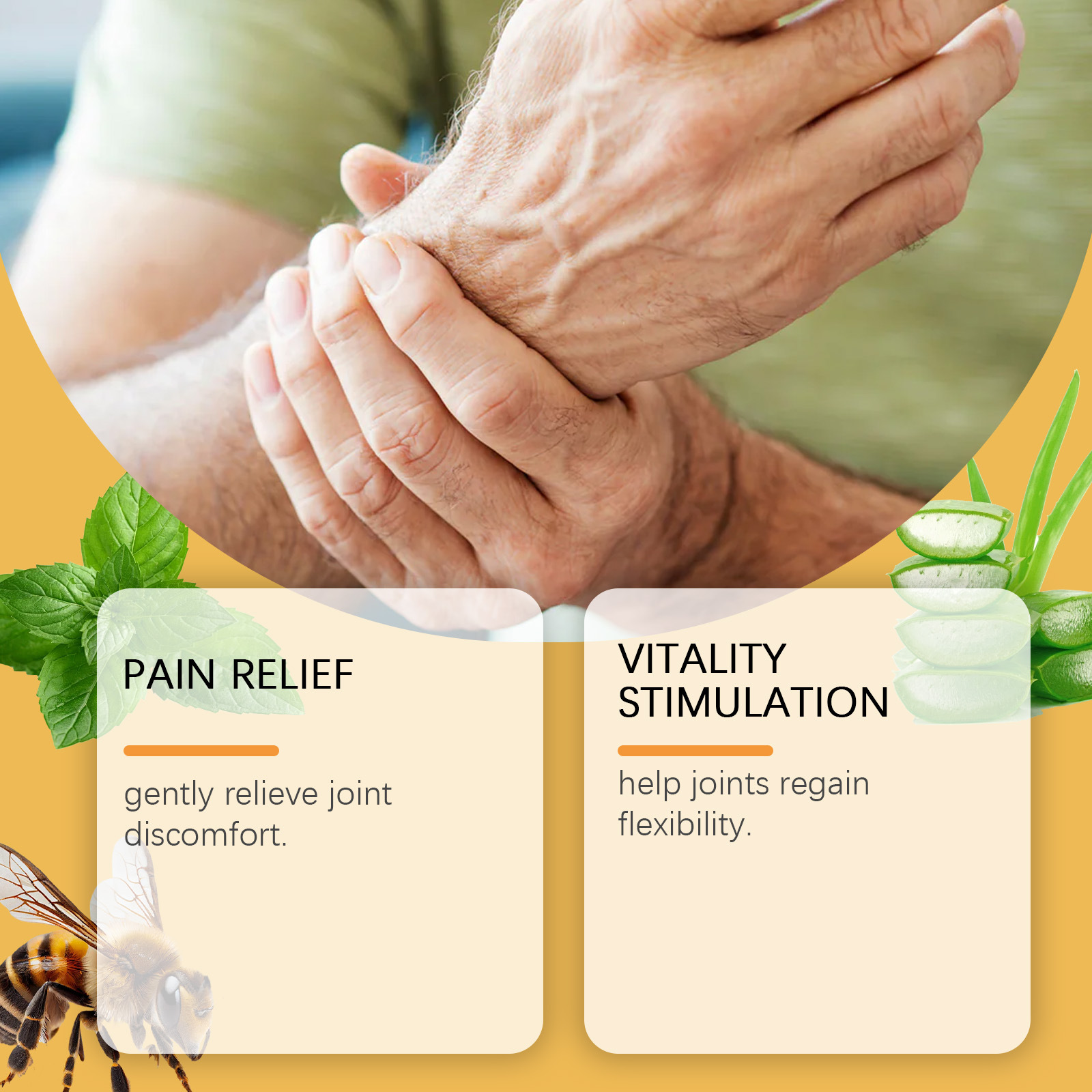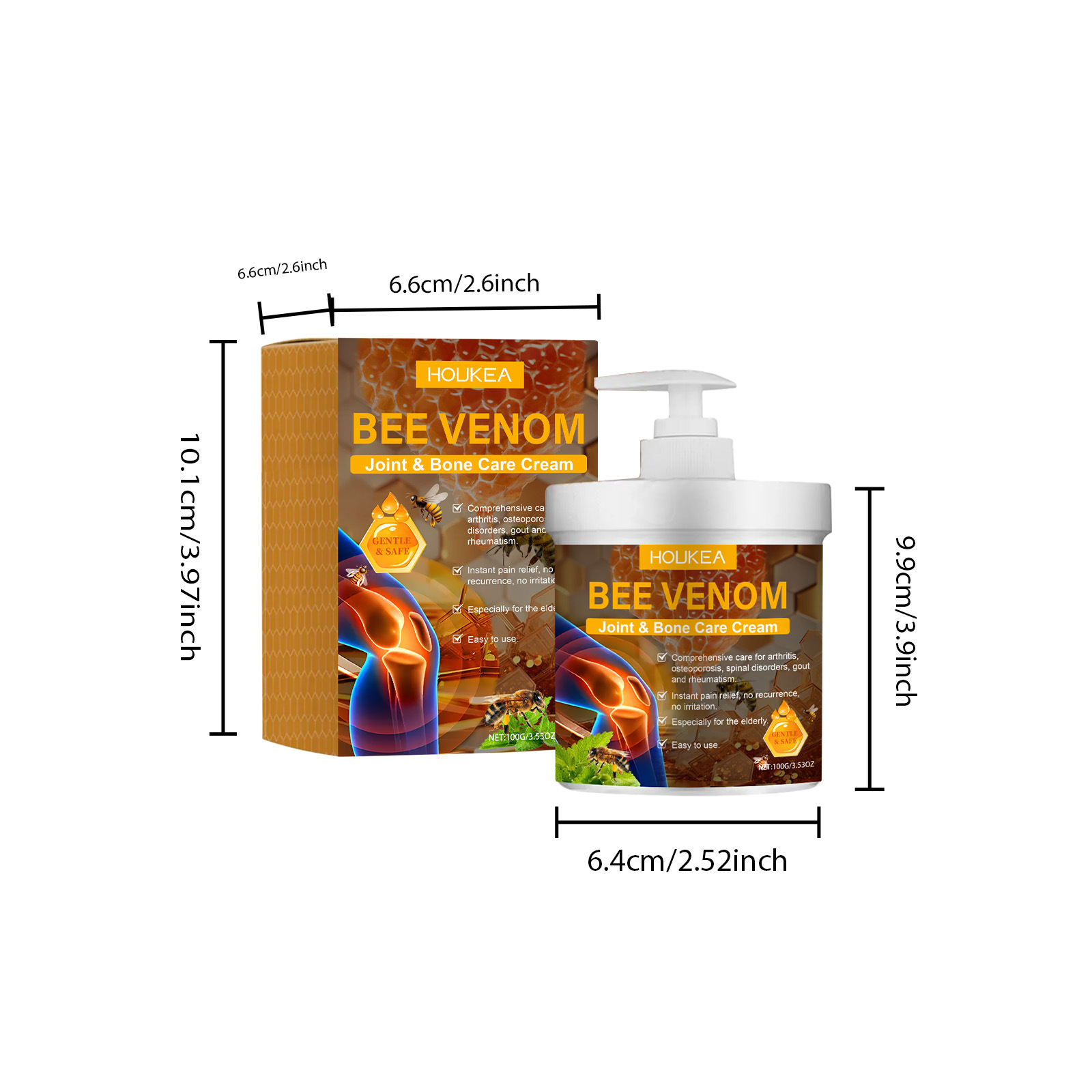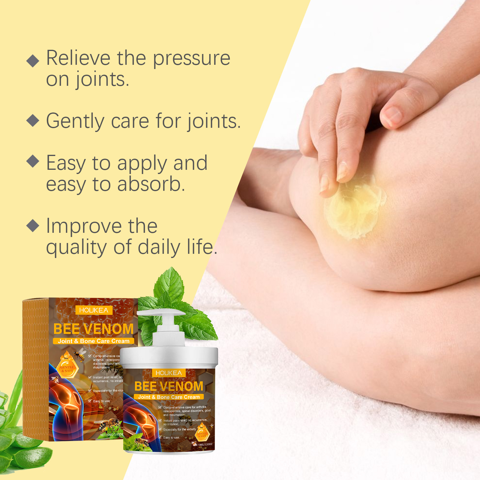 HOUKEA Bee Venom Joint Care 크림 부드러운 진정 손과 발 공동 매일 바디 케어 마사지 크림스토어 가기