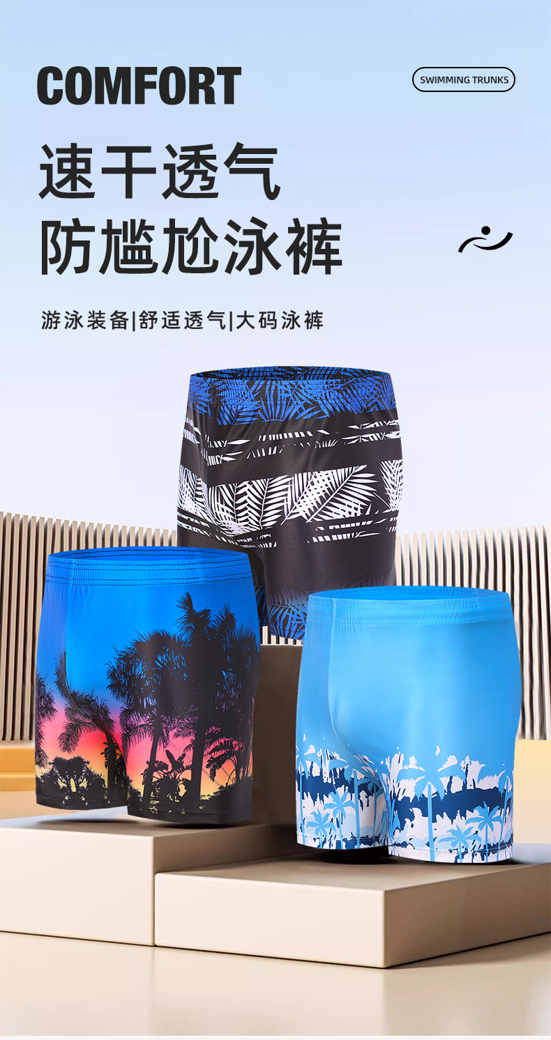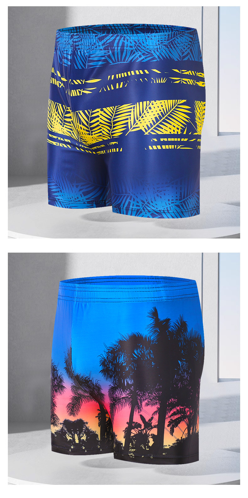 아마존 신상품 남성용 대형 수영복 프린트 통기성 사각팬츠 여름 수영 팬츠 캐주얼 스포츠 반바지