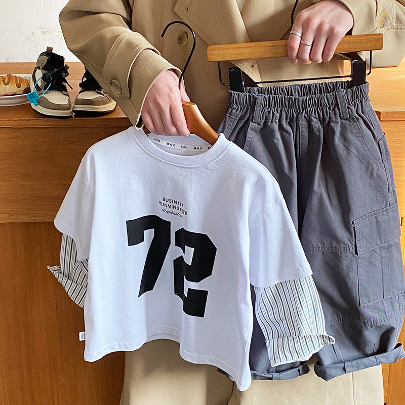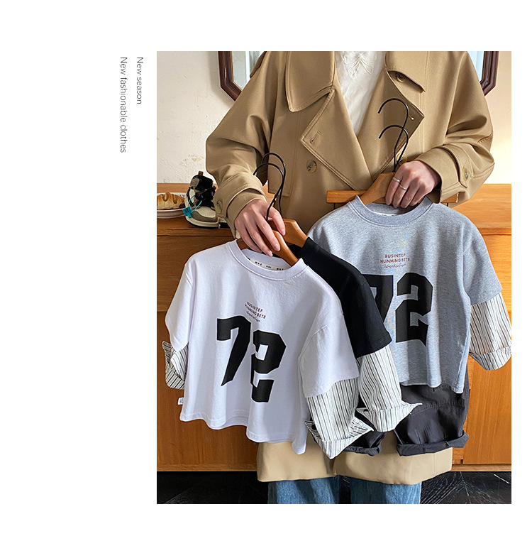 아동용 긴팔 티셔츠, 남아용 하의 셔츠, 2025년 봄, 가을 아동복, 가을 의류, 어린 소년들을 위한 트렌디하고 멋진 페이크 투피스 상의