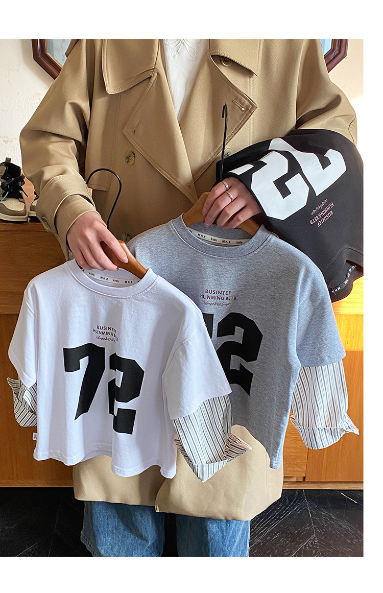 아동용 긴팔 티셔츠, 남아용 하의 셔츠, 2025년 봄, 가을 아동복, 가을 의류, 어린 소년들을 위한 트렌디하고 멋진 페이크 투피스 상의스토어 가기